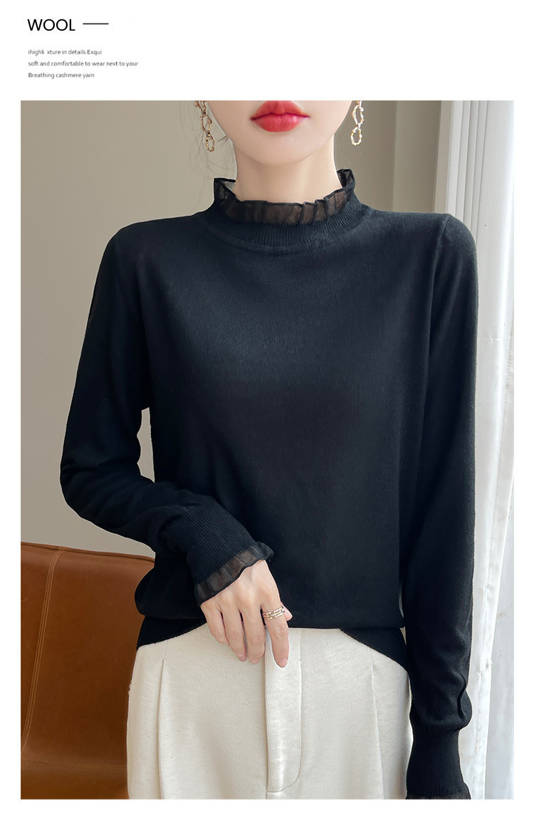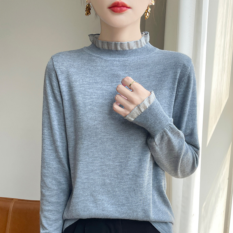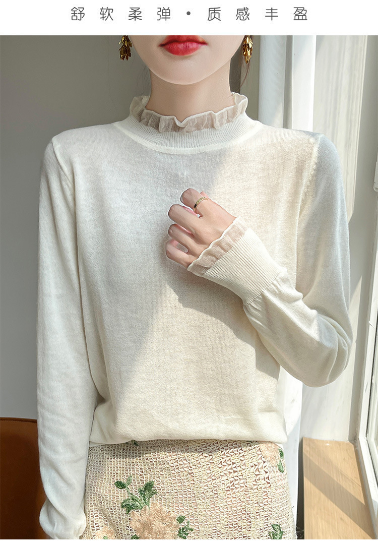여성 Worsted Wool Base 셔츠 봄과 여름 새로운 편안한 경량 니트 탑