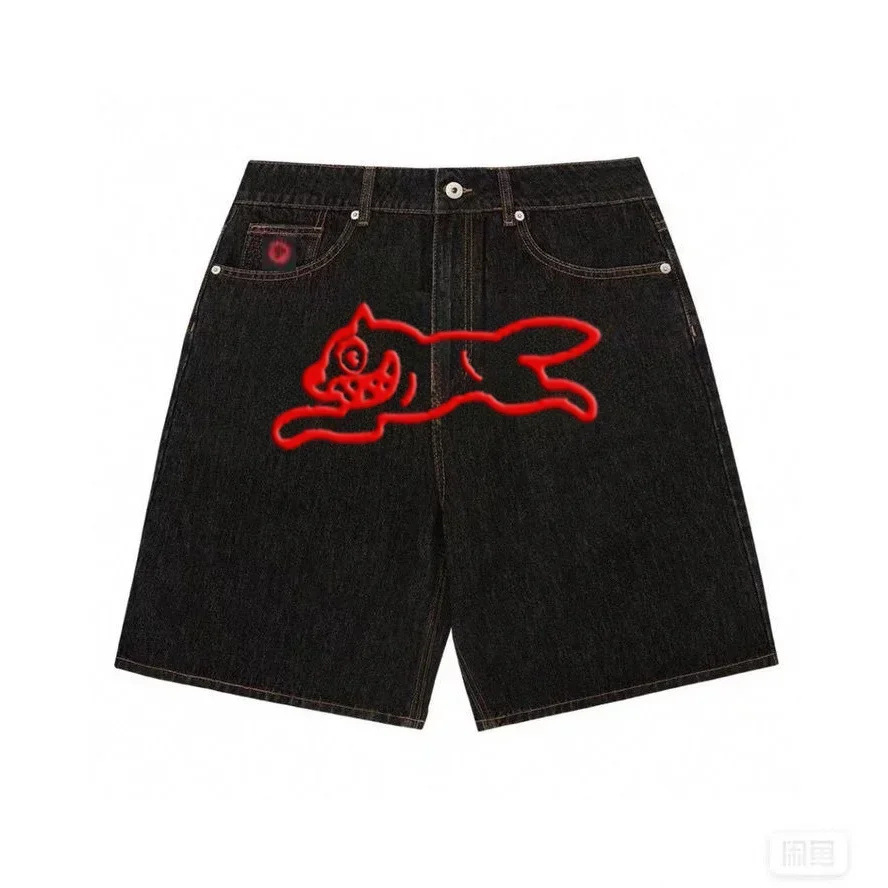 국경 간 AliExpress 뜨거운 판매 유럽과 미국의 힙합 비행 개 인쇄 데님 반바지 남성 하이 스트리트 트렌디 Ins 캐주얼 바지스토어 가기
