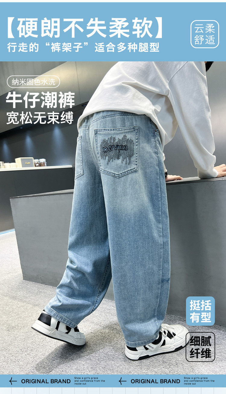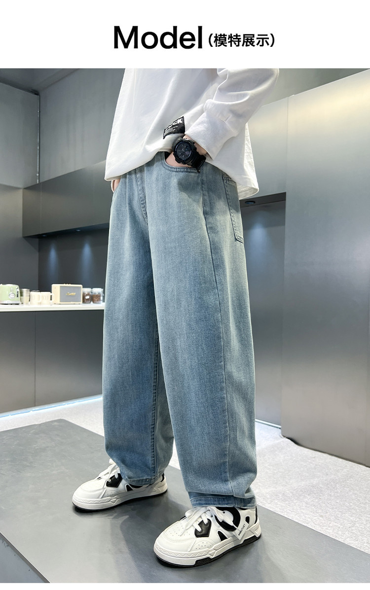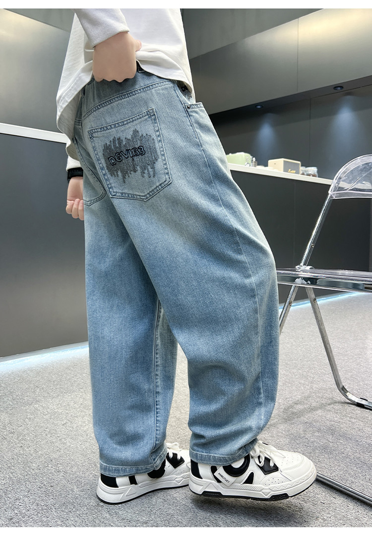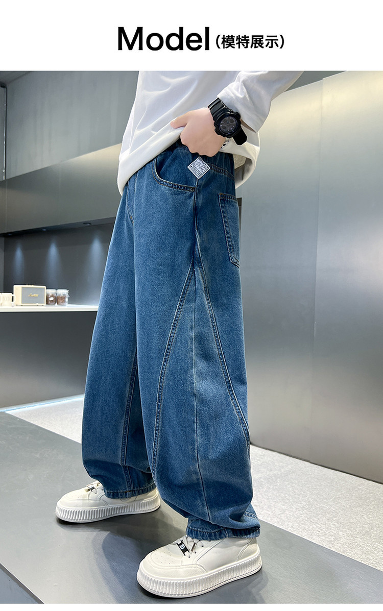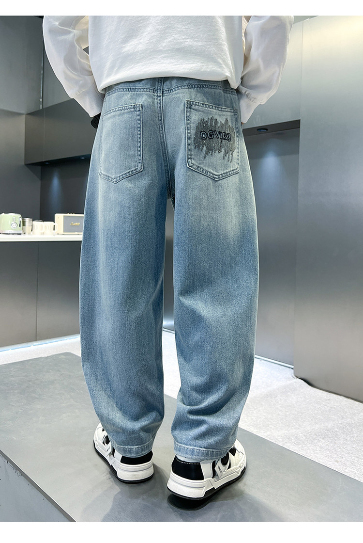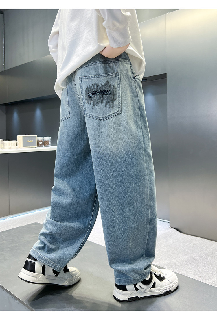 소년 바지 봄과 가을 어린이 청바지 2025 새로운 스타일 미드 빅 어린이 서양식 봄 스티칭 캐주얼 바지 트렌디스토어 가기