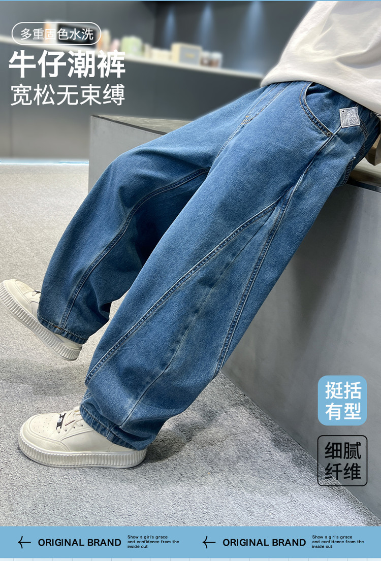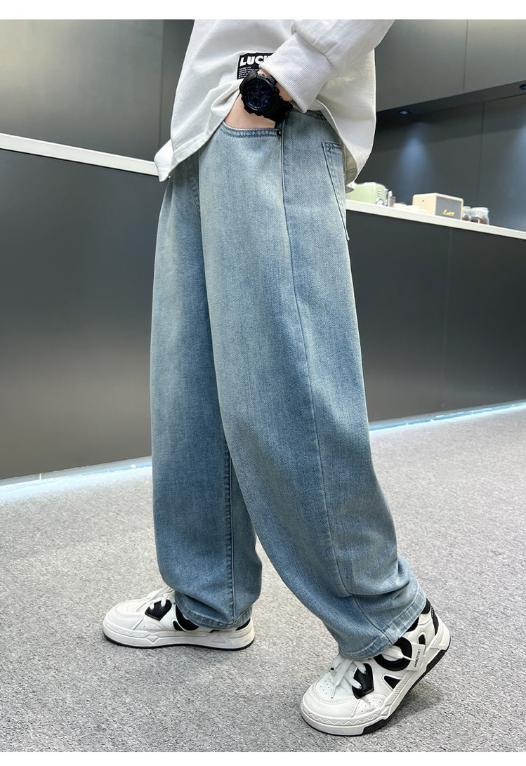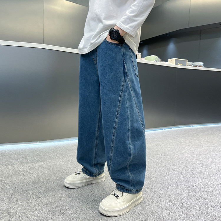 소년 바지 봄과 가을 어린이 청바지 2025 새로운 스타일 미드 빅 어린이 서양식 봄 스티칭 캐주얼 바지 트렌디