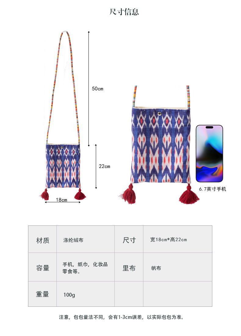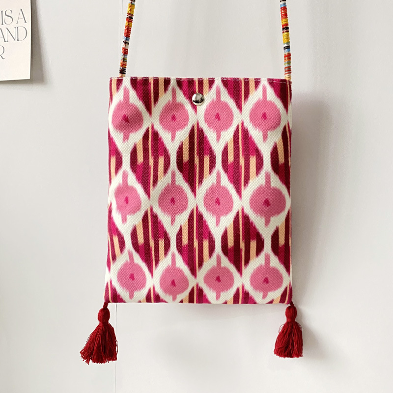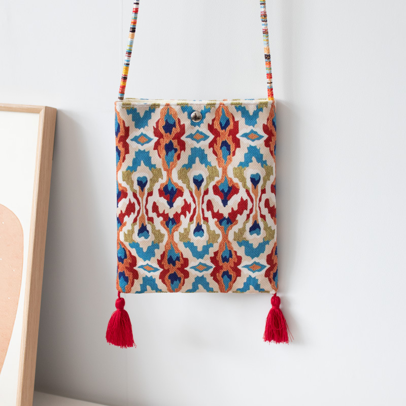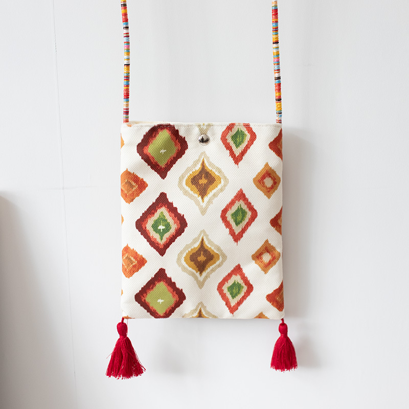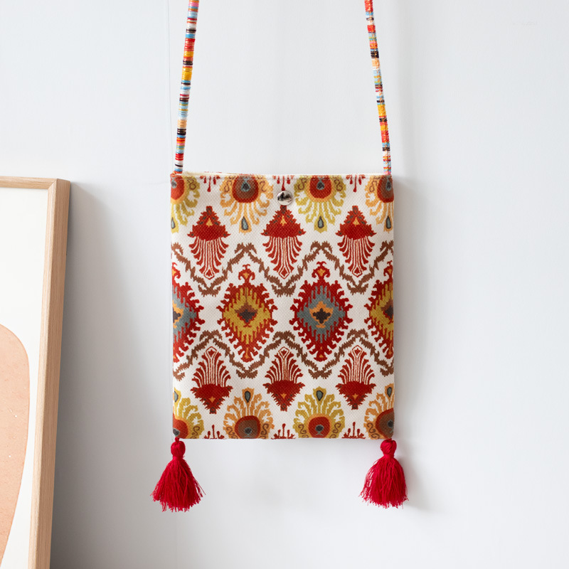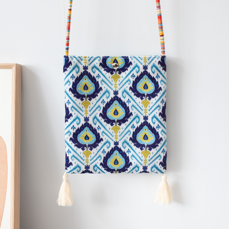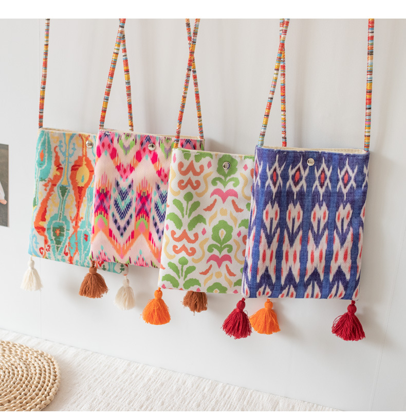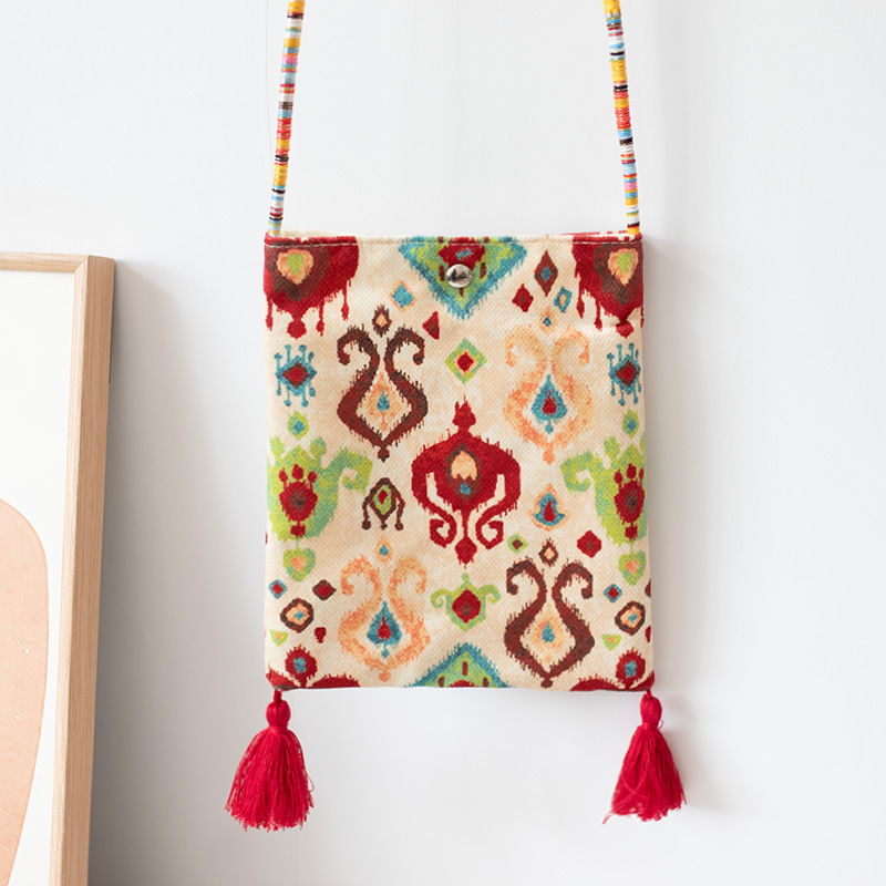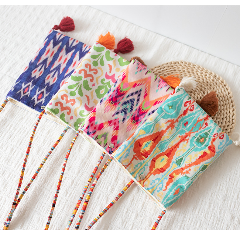 2025 봄과 여름 새로운 신장 민족 예술 국가 스타일 휴대 전화 가방 맞춤형 수제 틈새 크로스 바디 작은 헝겊 가방