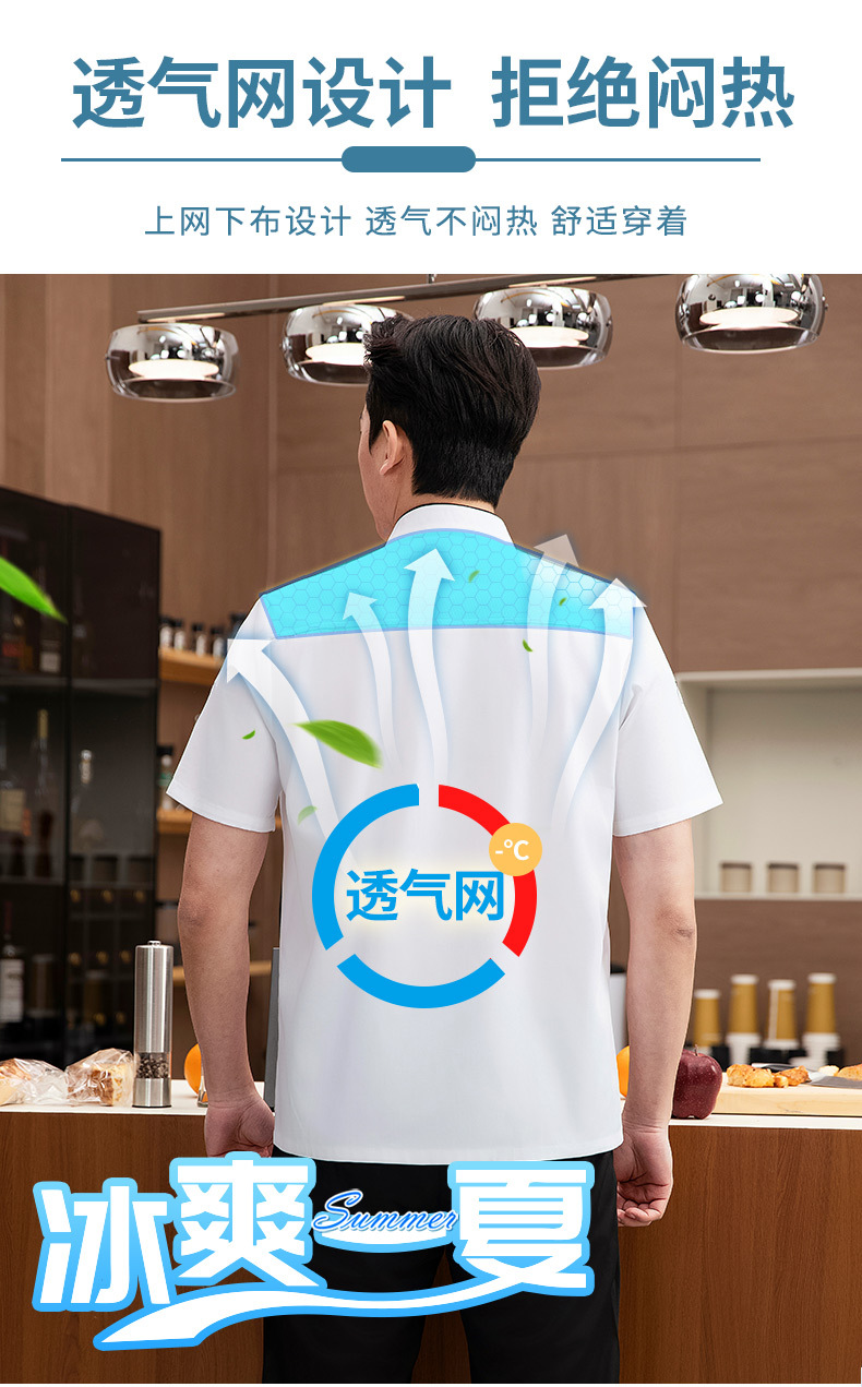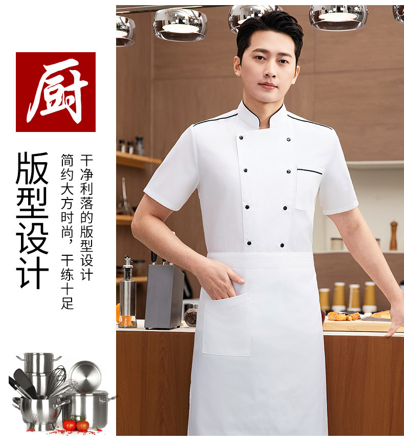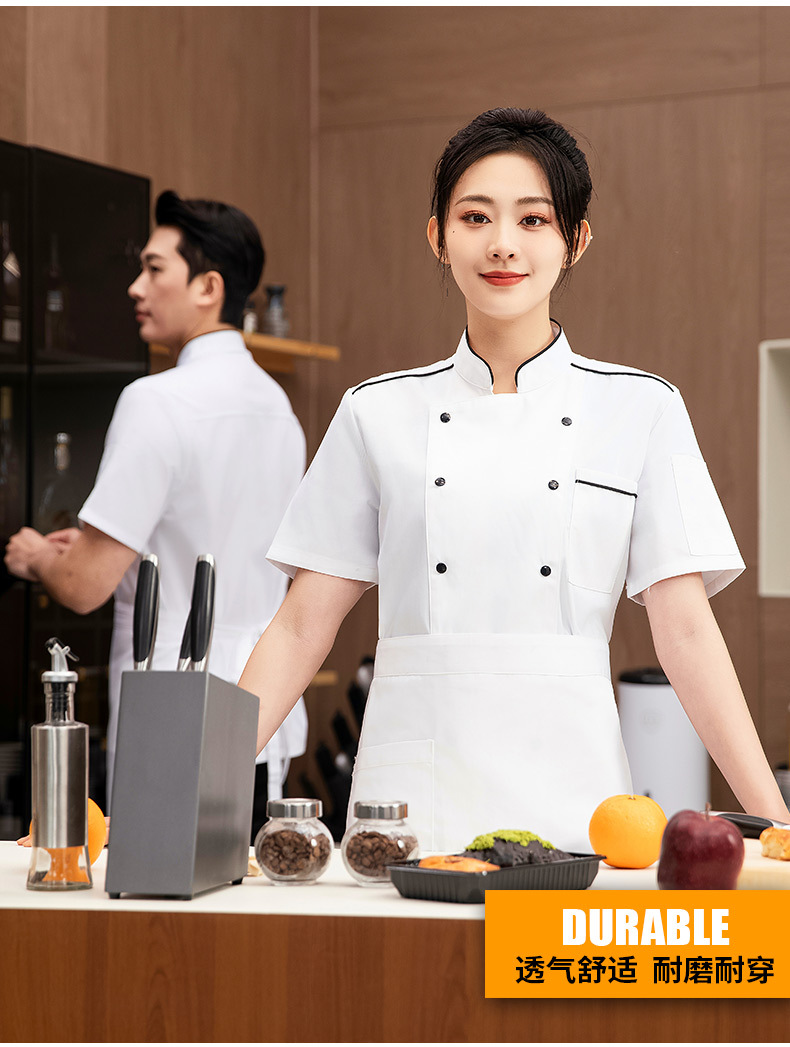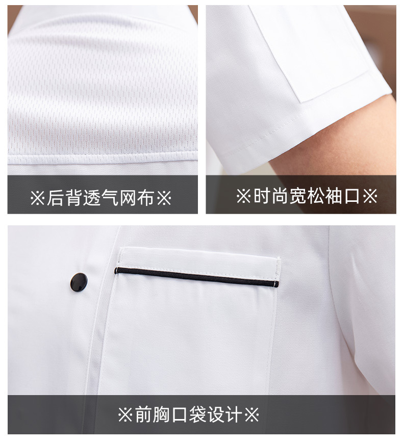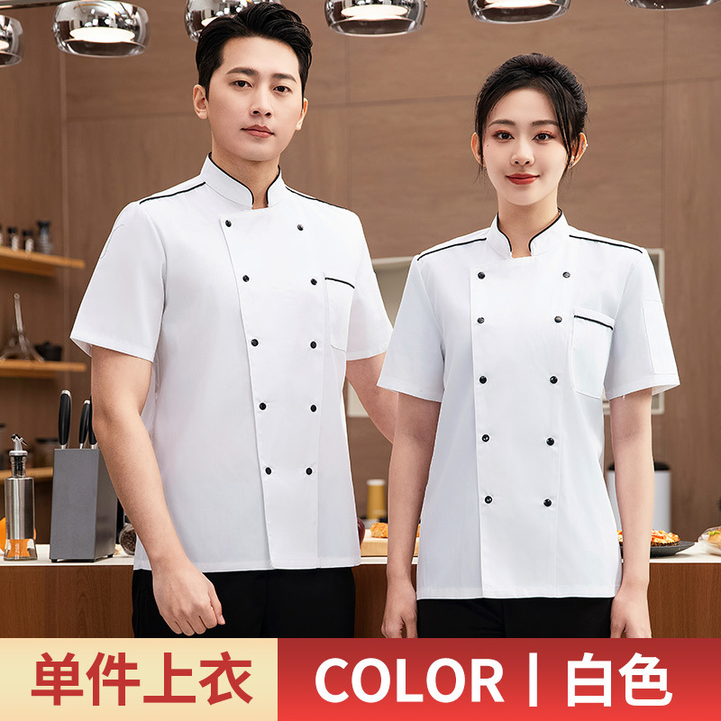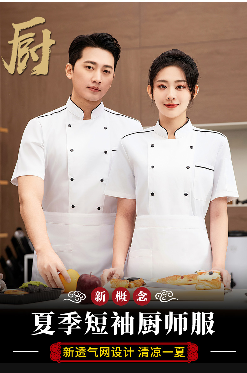 매점 요리사 작업 옷 반팔 더블 브레스트 케이터링 특별한 흰색 중국 국수 주방 작업 옷 여름 통기성스토어 가기
