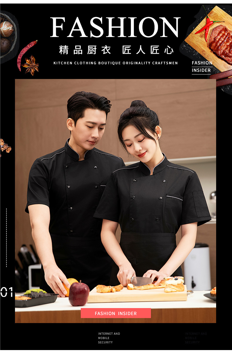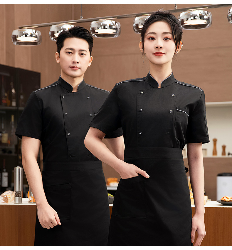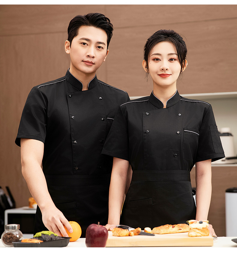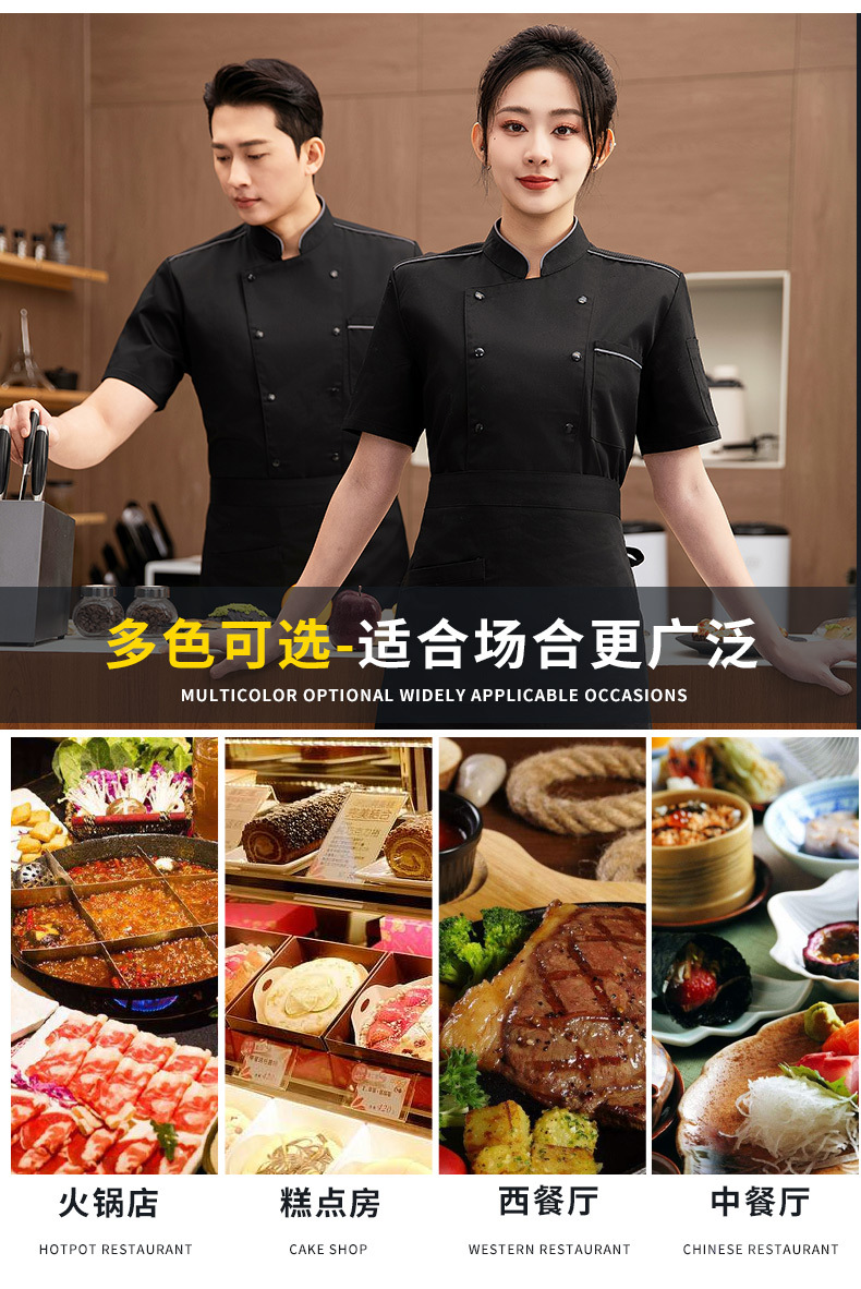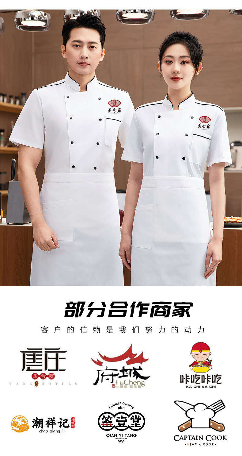매점 요리사 작업 옷 반팔 더블 브레스트 케이터링 특별한 흰색 중국 국수 주방 작업 옷 여름 통기성스토어 가기