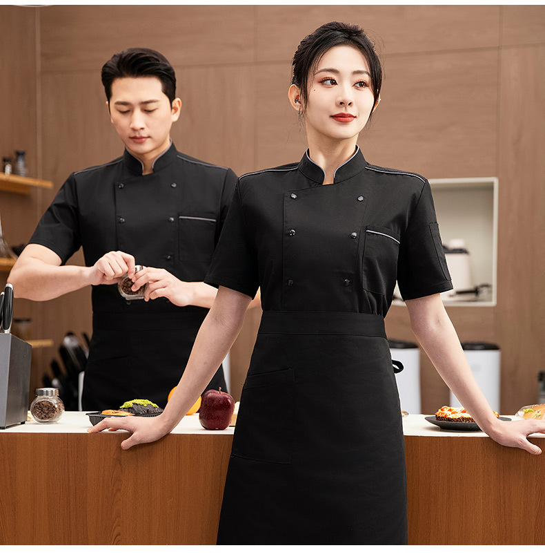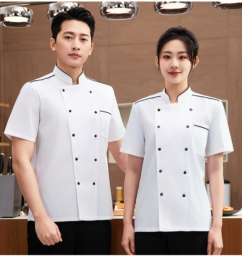 매점 요리사 작업 옷 반팔 더블 브레스트 케이터링 특별한 흰색 중국 국수 주방 작업 옷 여름 통기성