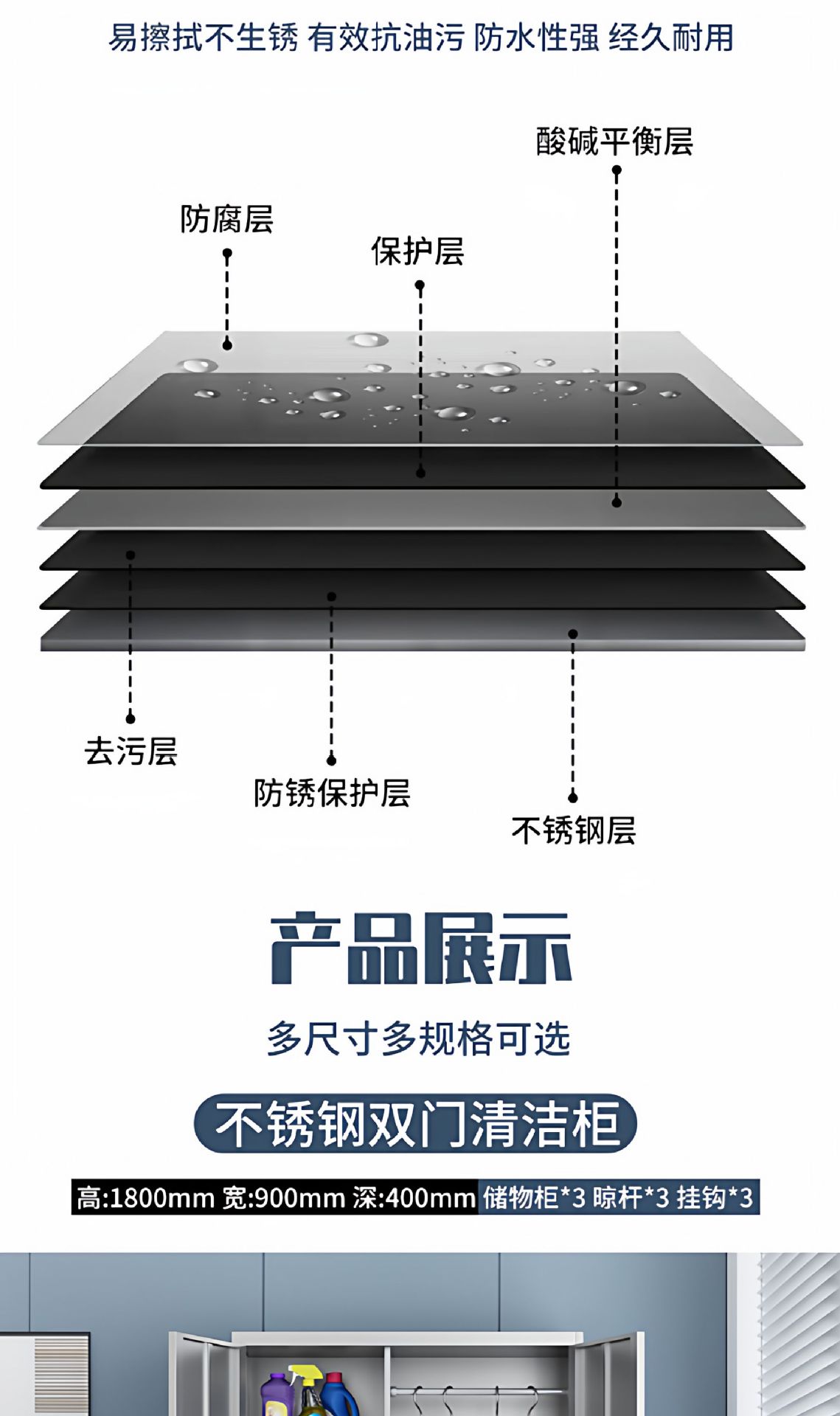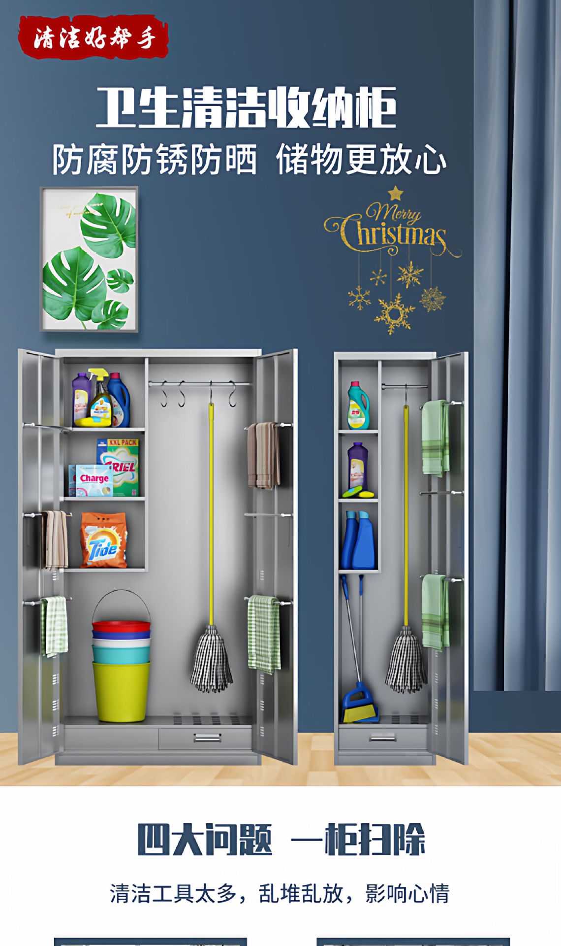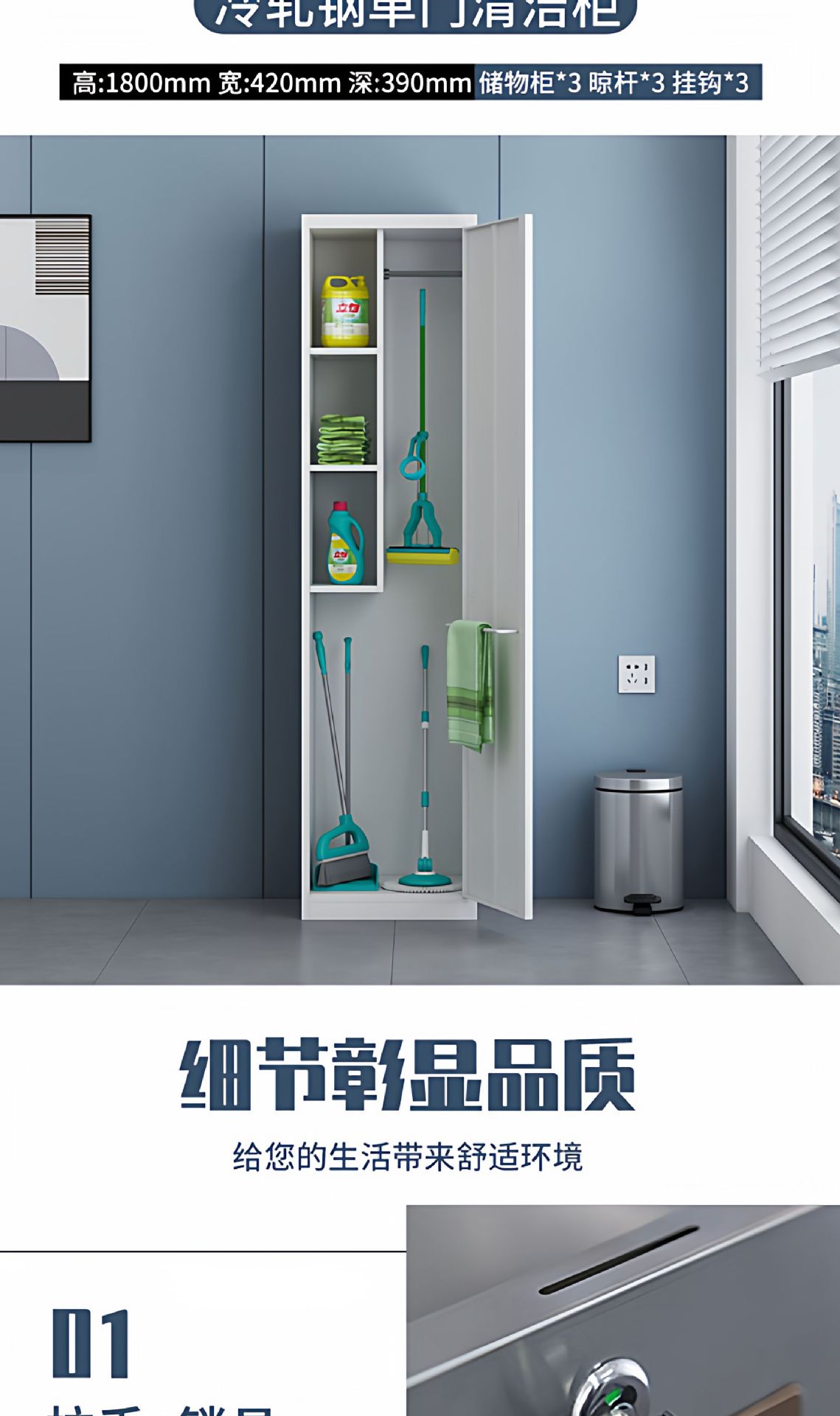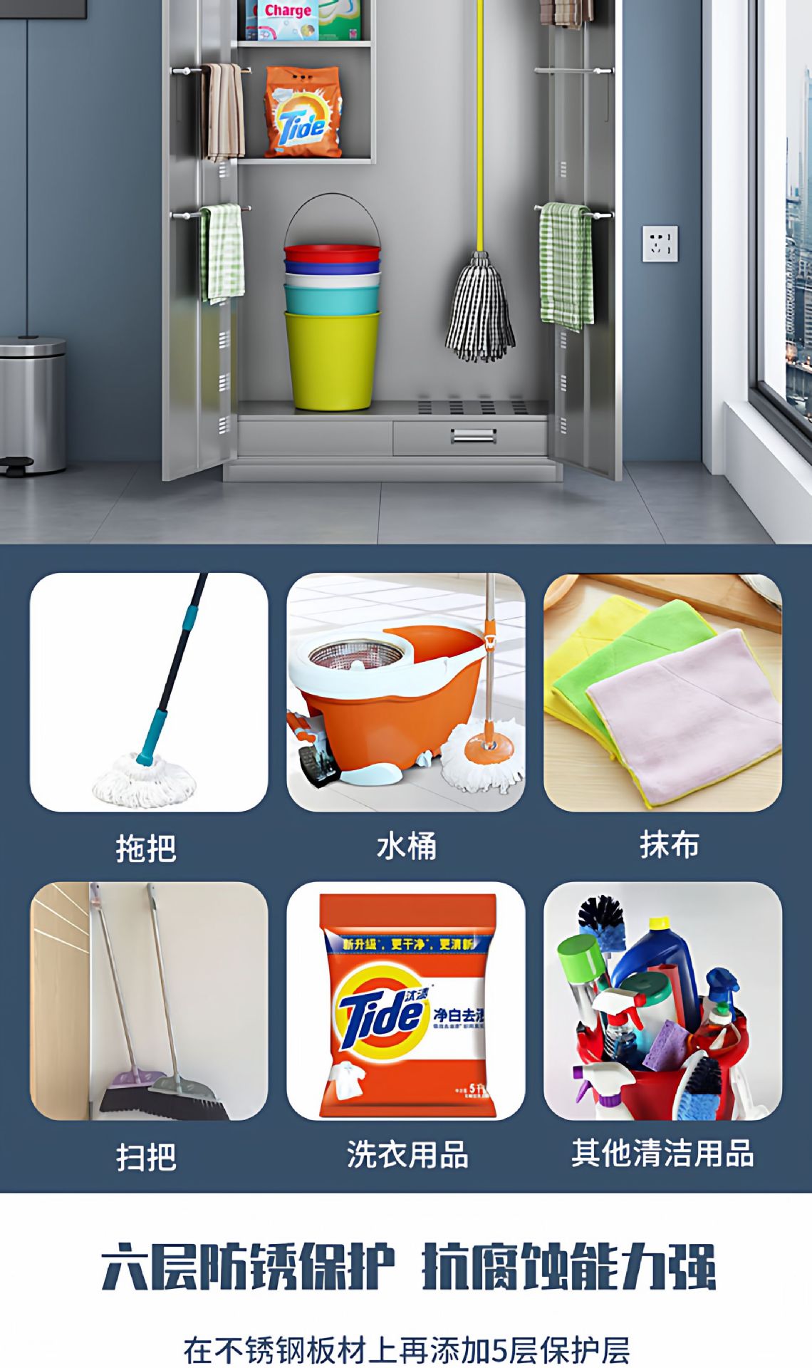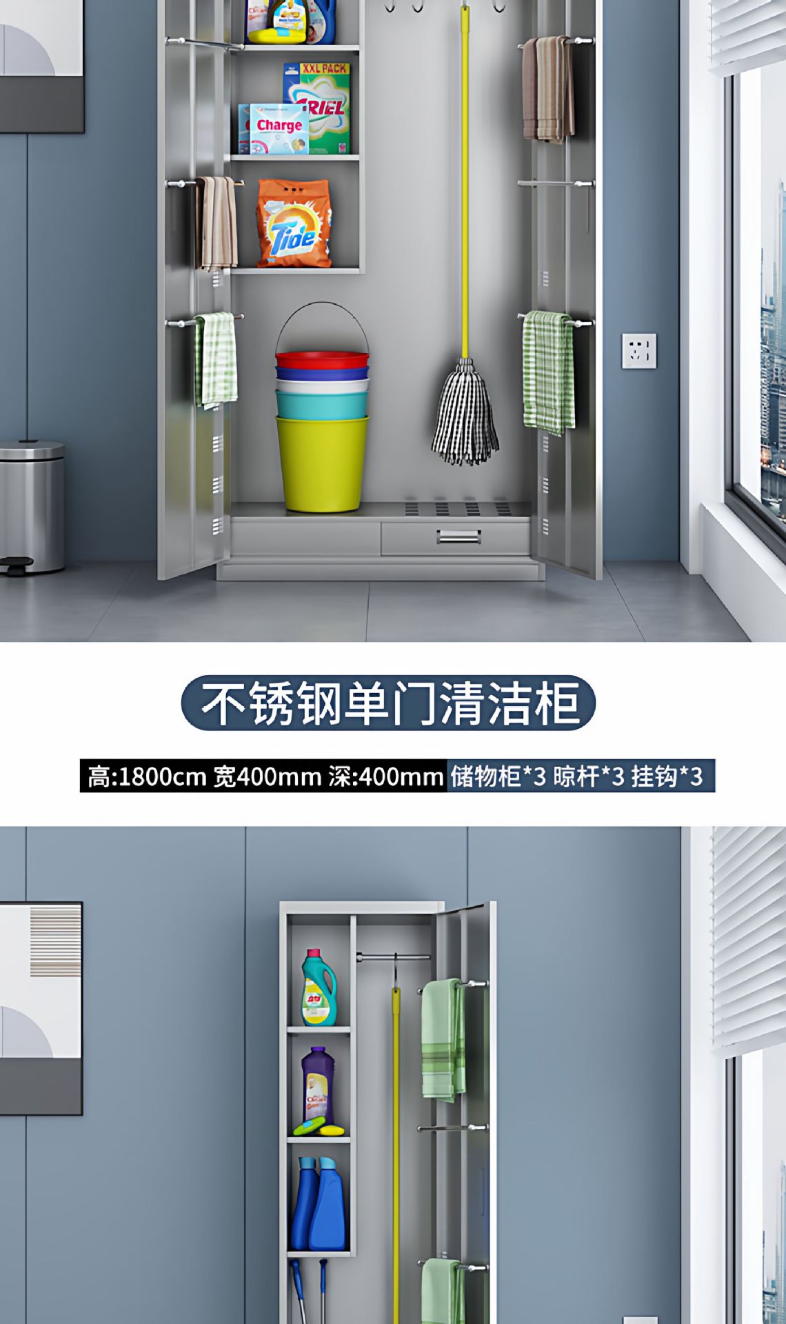 不锈钢清洁柜家用阳台杂物间储存柜学校教室单双门拖把扫帚收纳柜