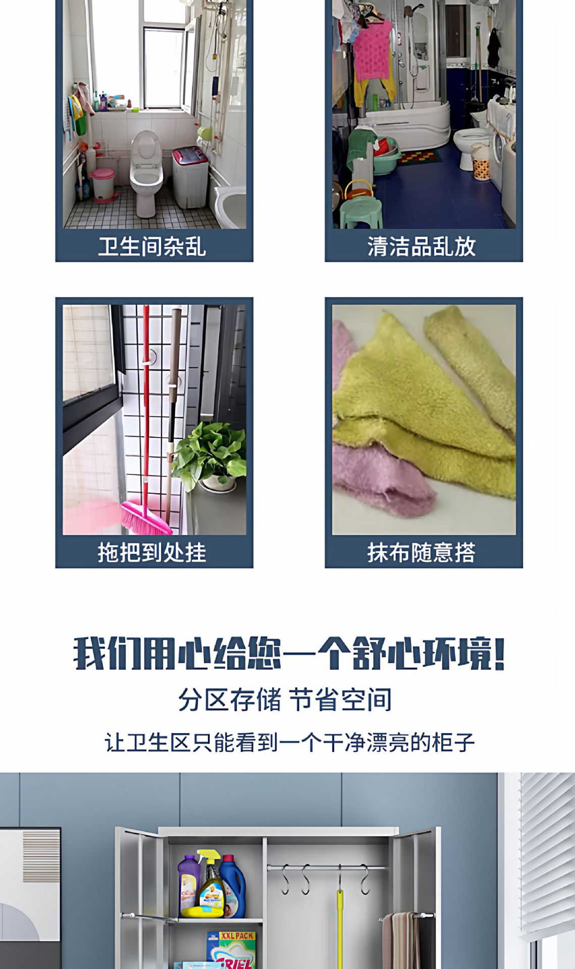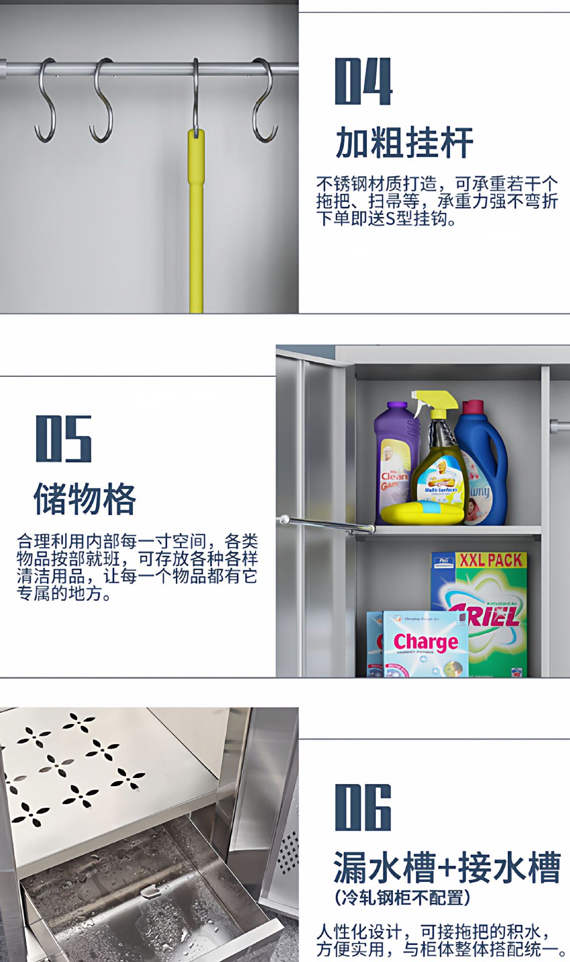• 304 스테인리스 스틸 양문형 청소 용품 보관함 (높은 다리형)
