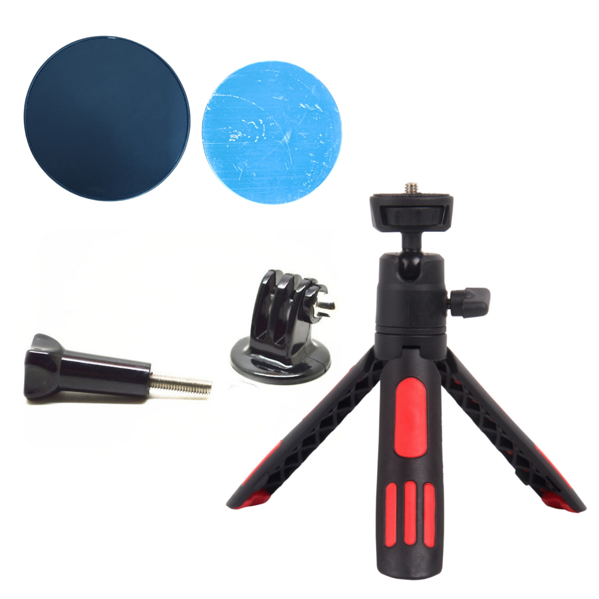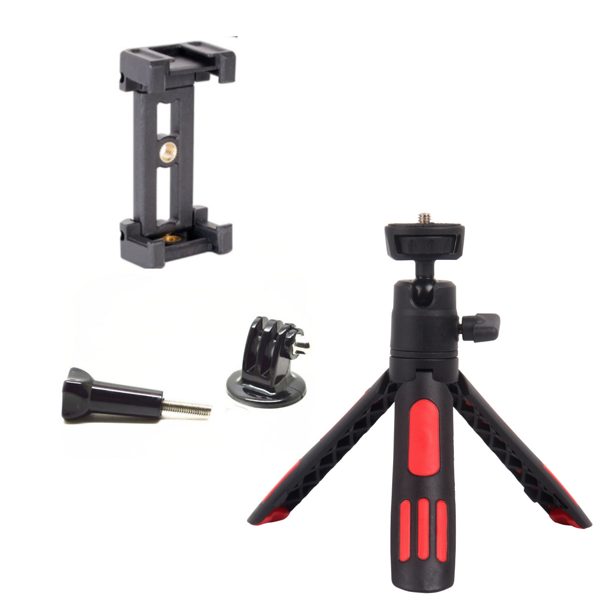 • 레드 데스크탑 삼각대 셀카봉 [휴대폰 클립 + 액션 카메라 어댑터]