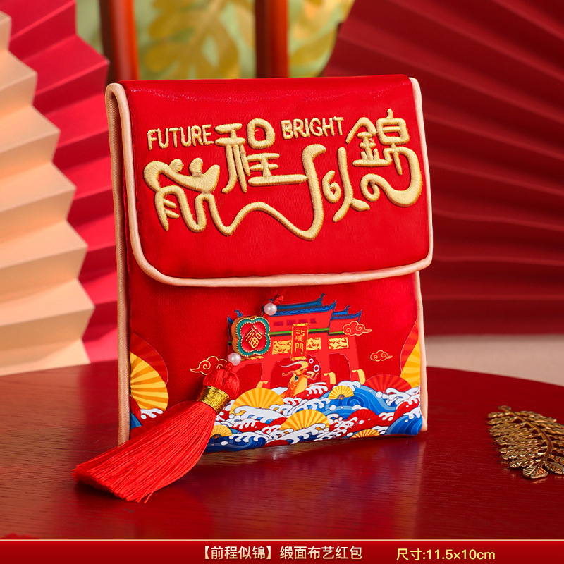 • 【밝은 미래】술 자수 패브릭 빨간 봉투