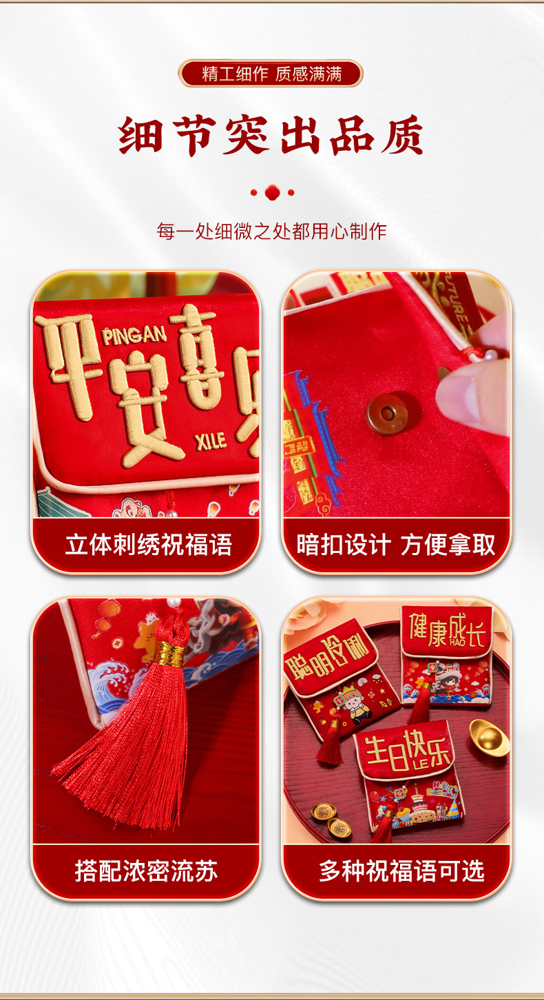 • 새해 자수 빨간 봉투 - 평화, 기쁨과 축복