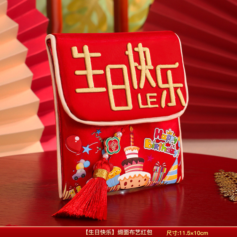 • 【생일 축하합니다】술 자수 패브릭 빨간 봉투