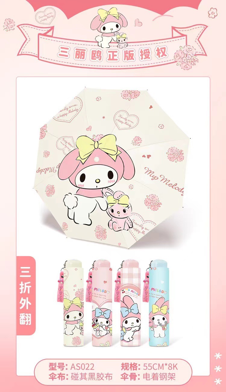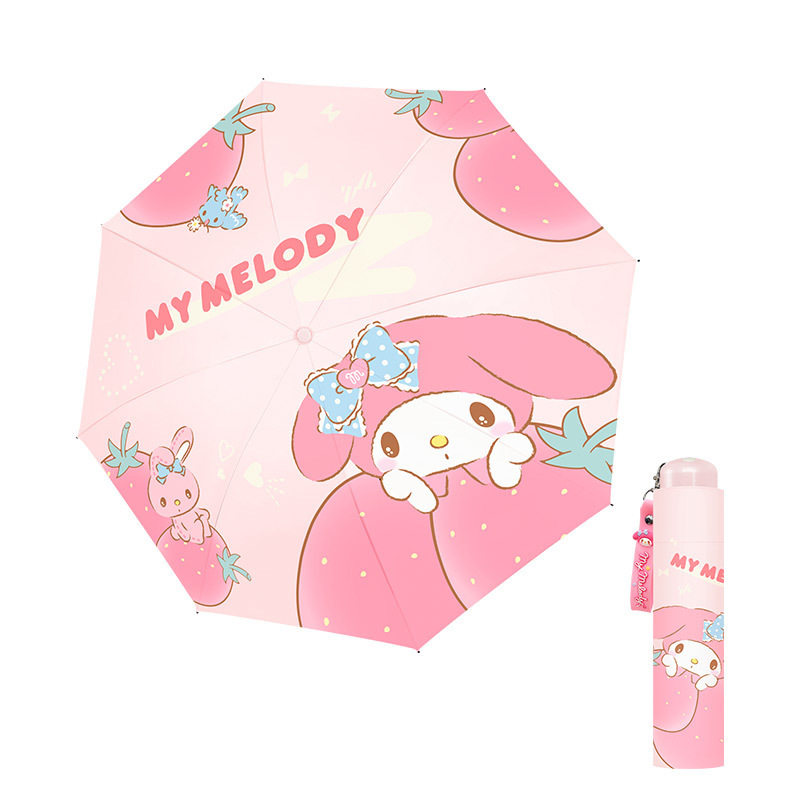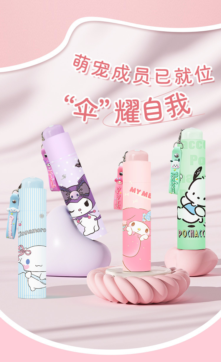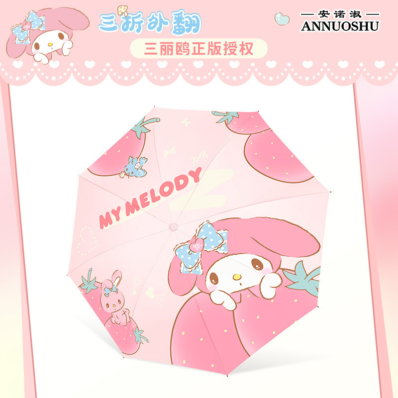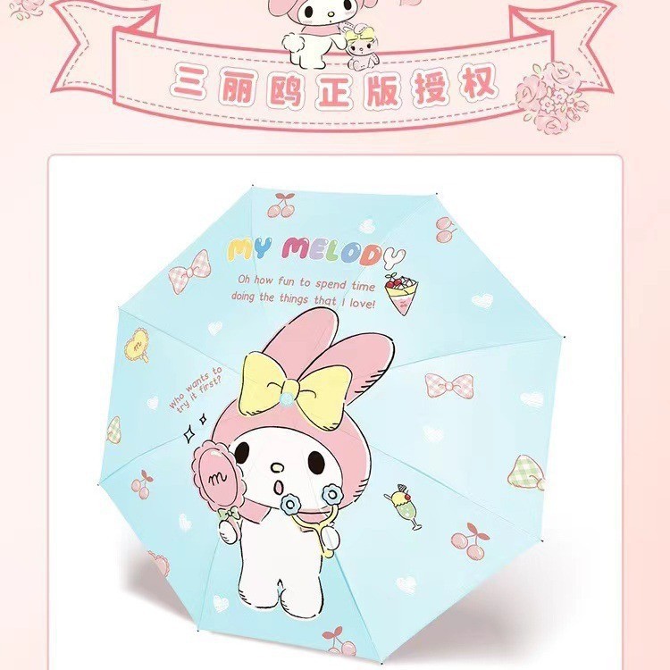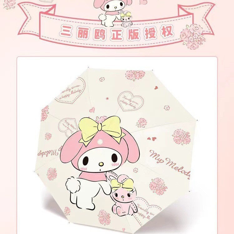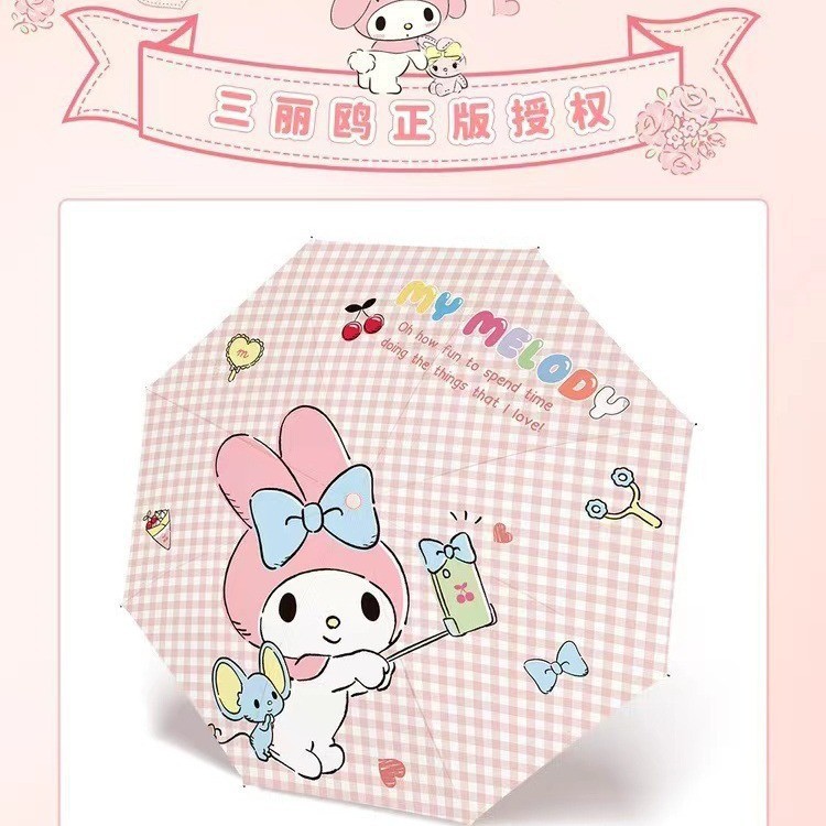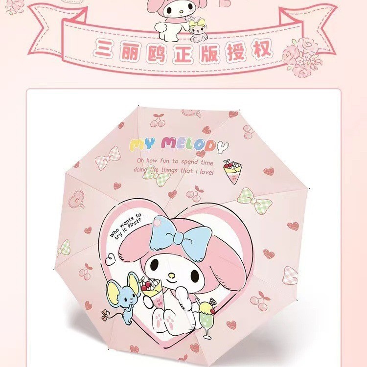정품 산리오 우산 검은 고무 햇살 우산 맑고 비오는 이중 용도 선 스크린 및 UV 보호 휴대용 만화 3 배 우산스토어 가기