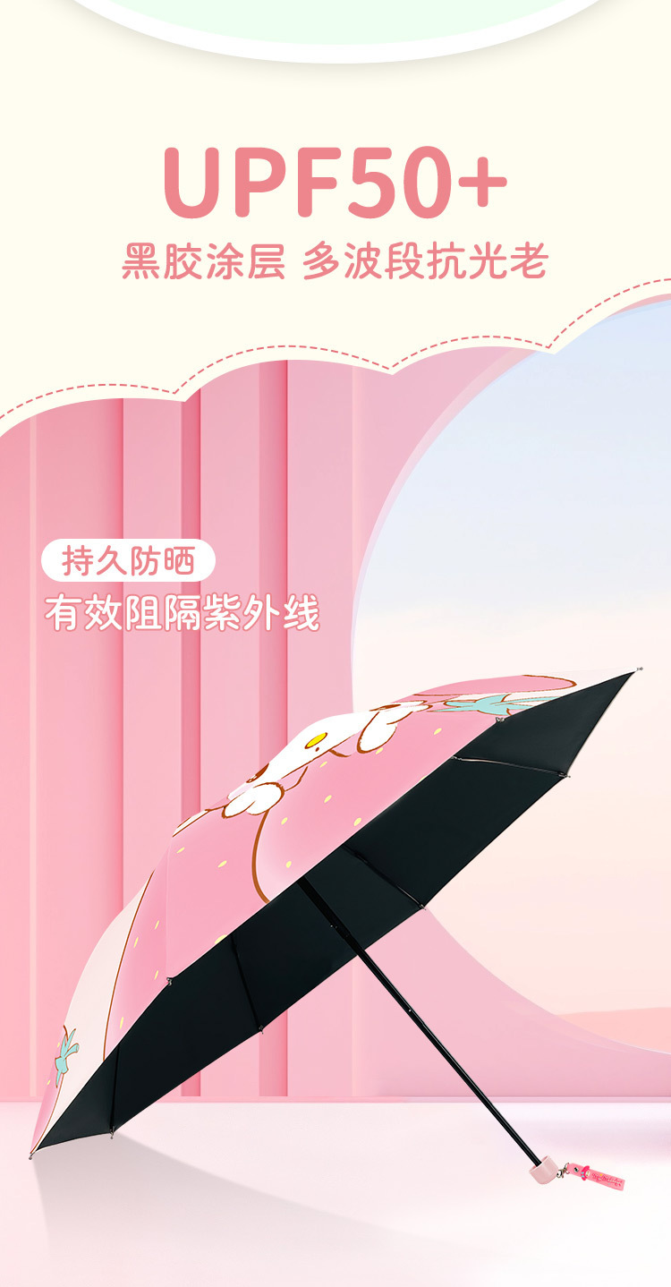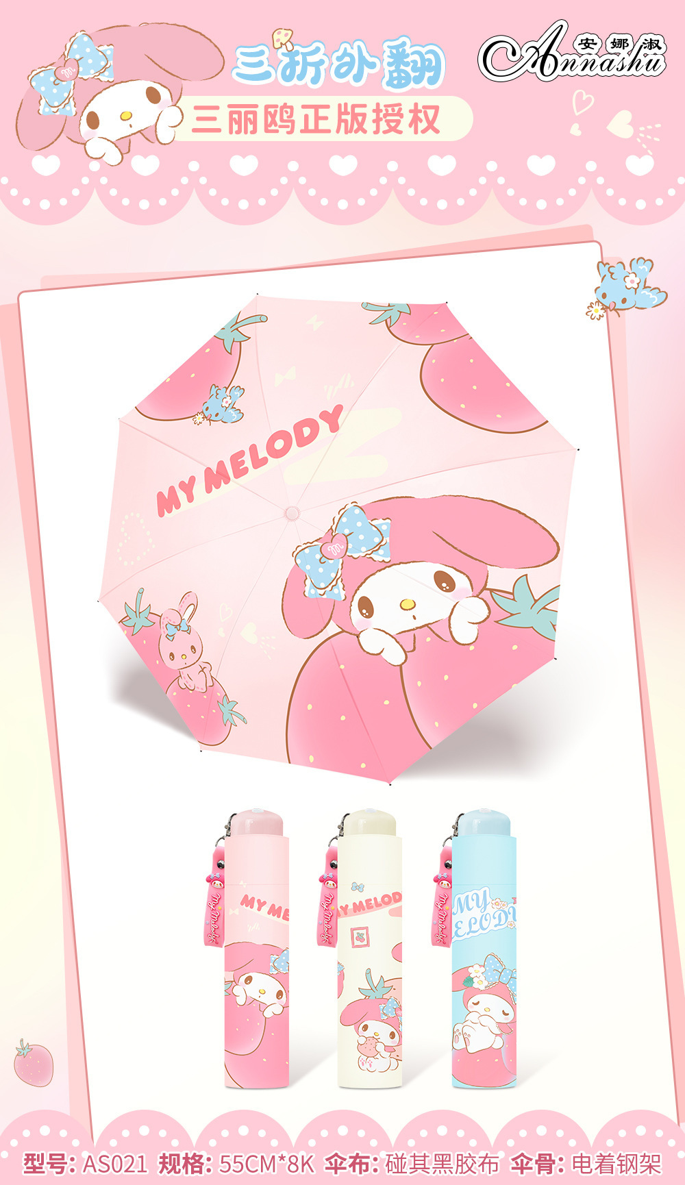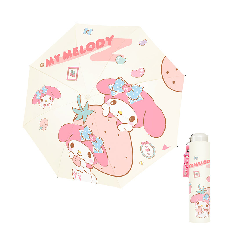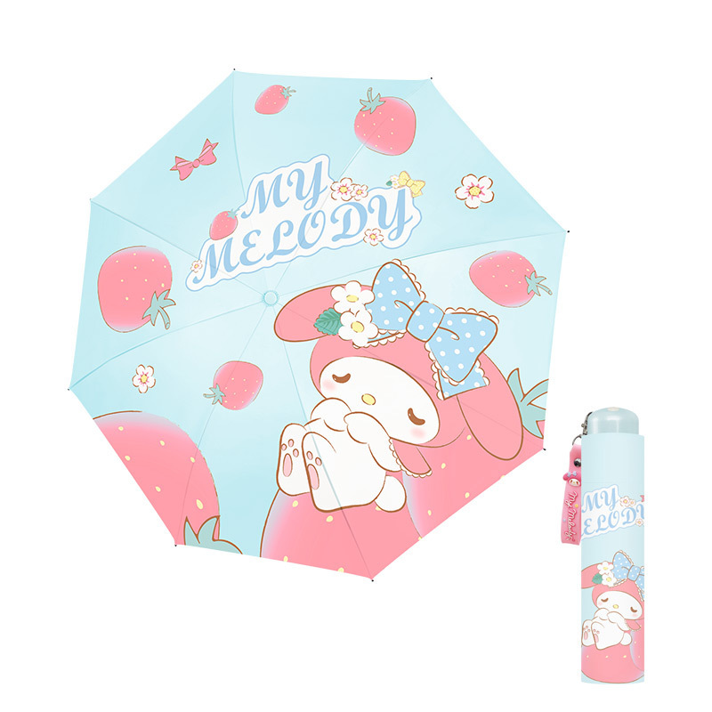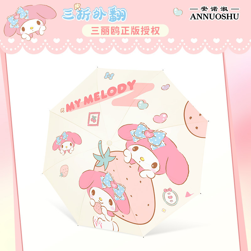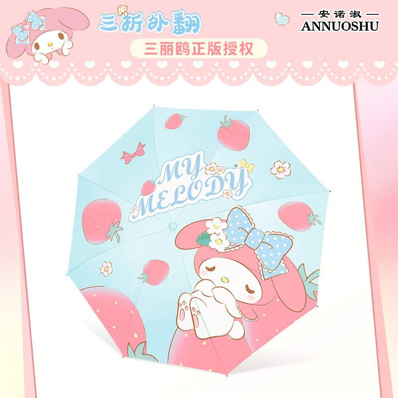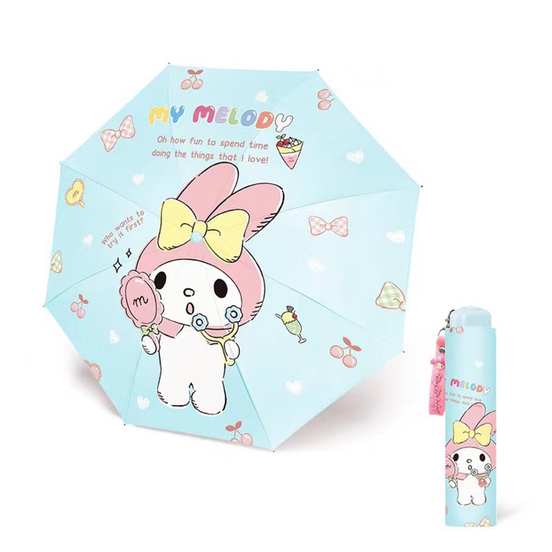 정품 산리오 우산 검은 고무 햇살 우산 맑고 비오는 이중 용도 선 스크린 및 UV 보호 휴대용 만화 3 배 우산스토어 가기