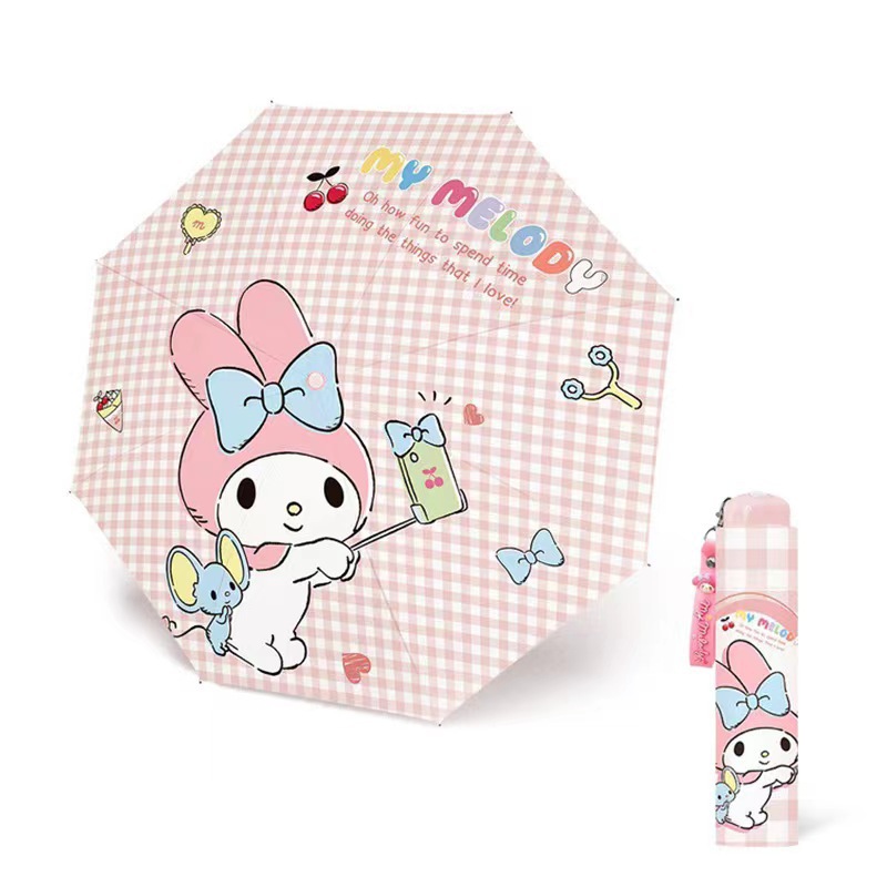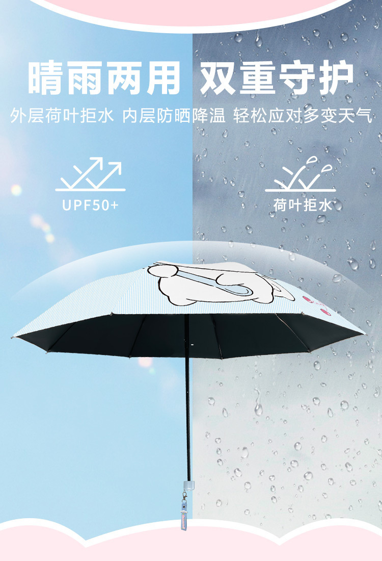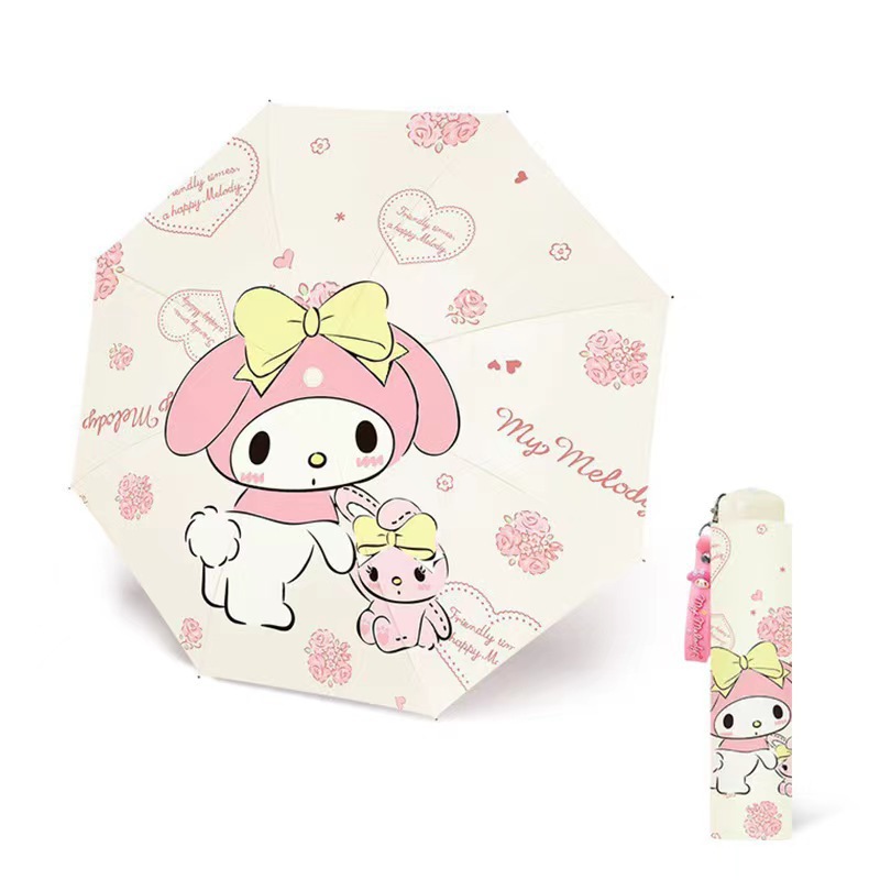 정품 산리오 우산 검은 고무 햇살 우산 맑고 비오는 이중 용도 선 스크린 및 UV 보호 휴대용 만화 3 배 우산
