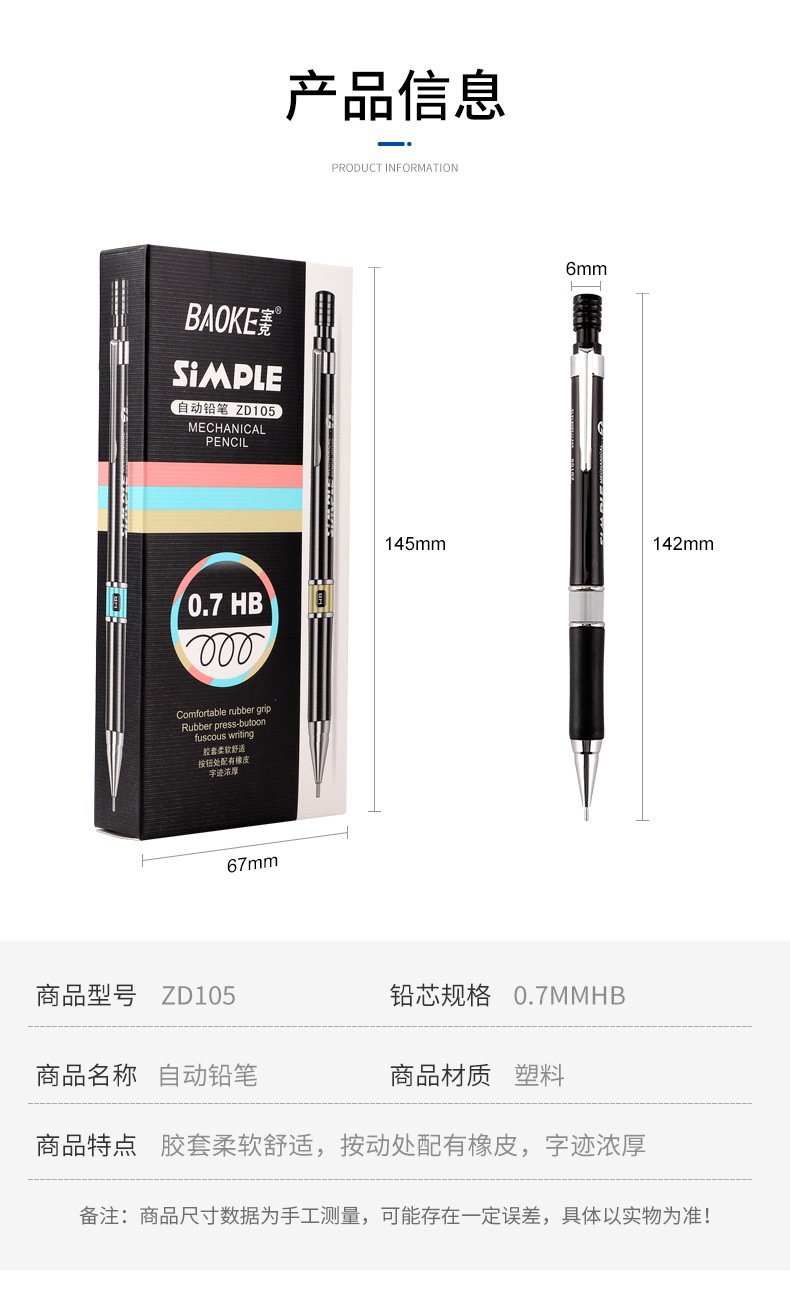 Baoke 프레스 자동 HB 연필 학생 미술 회화 스케치 활동 연필 0.7mm 금속 ZD111스토어 가기