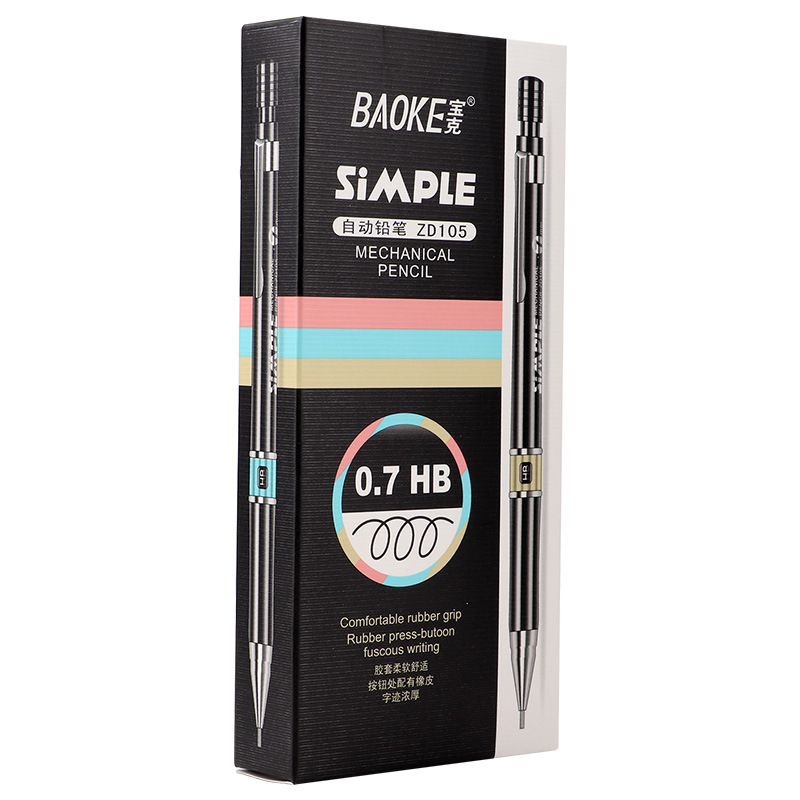 Baoke 프레스 자동 HB 연필 학생 미술 회화 스케치 활동 연필 0.7mm 금속 ZD111