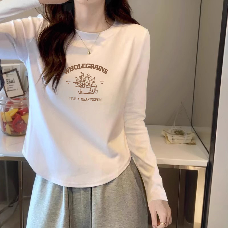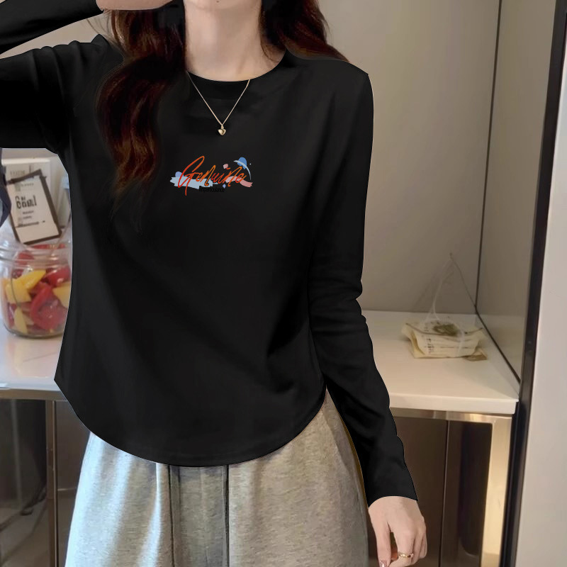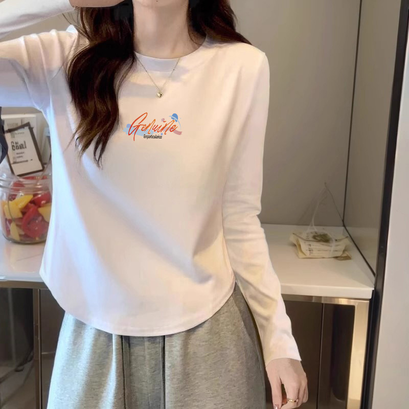 13 라인 여성의 새로운 아크 긴팔 티셔츠 디자인 센스 니쉬 인 슬림 룩 에이지-세련된 올 매치 탑 감소스토어 가기