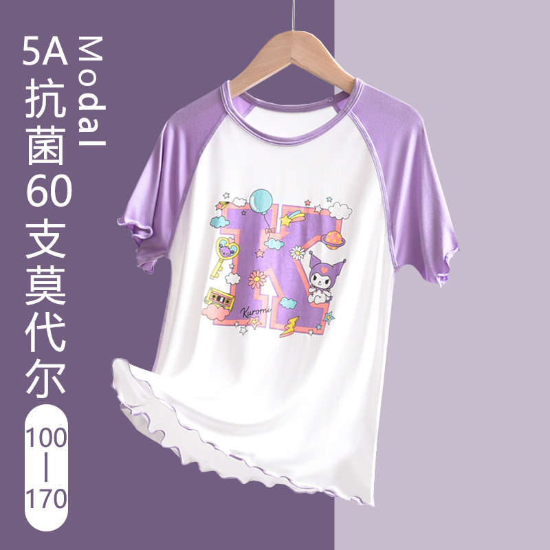 A 급 어린이 잠옷 싱글 얇은 반팔 모달 소녀의 최고 아기 홈 옷 중 · 대형 어린이를위한 잠자는 옷