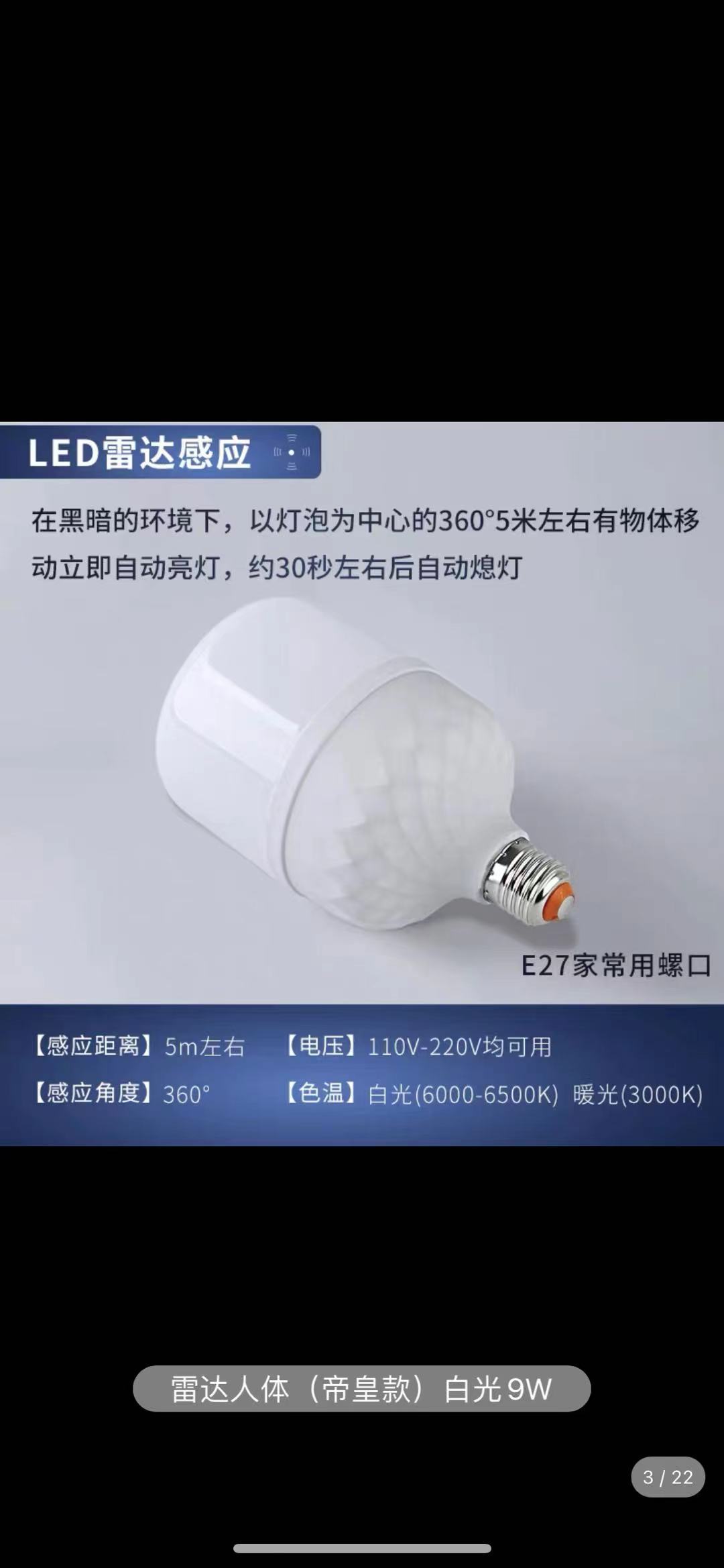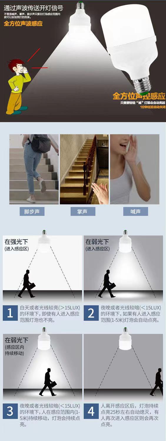 Led 음성 제어 소리와 빛 제어 인체 레이더 센서 전구 적외선 가정용 지능형 복도 슈퍼 밝은