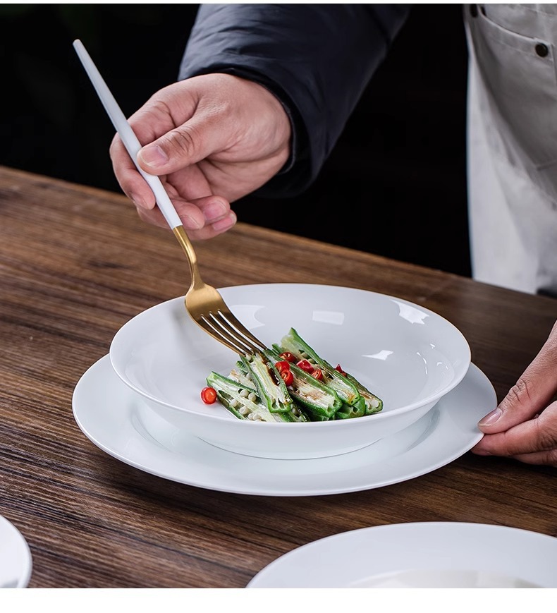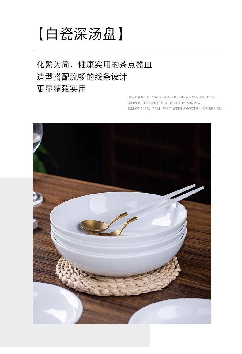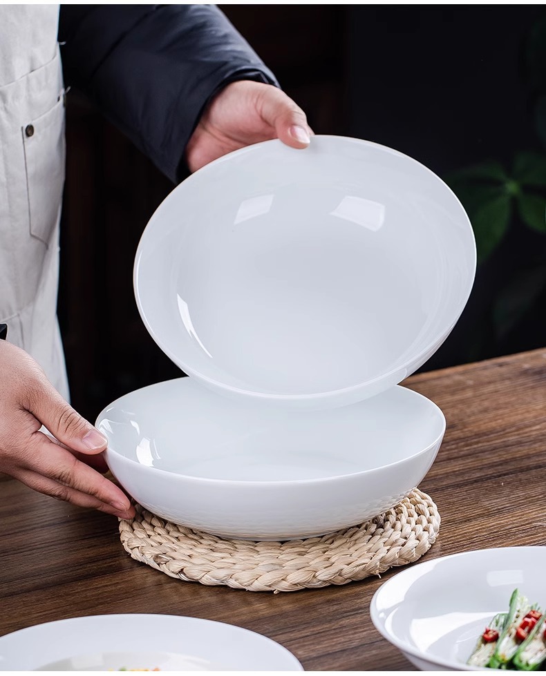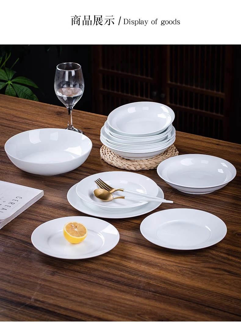높은 흰색 도자기 Jingdezhen 중국 Underglaze 컬러 높은 흰색 도자기 세라믹 플레이트 가정용 접시 쌀 플레이트 플랫 플레이트 딥 플레이트 플레이트 그릇 플레이트스토어 가기