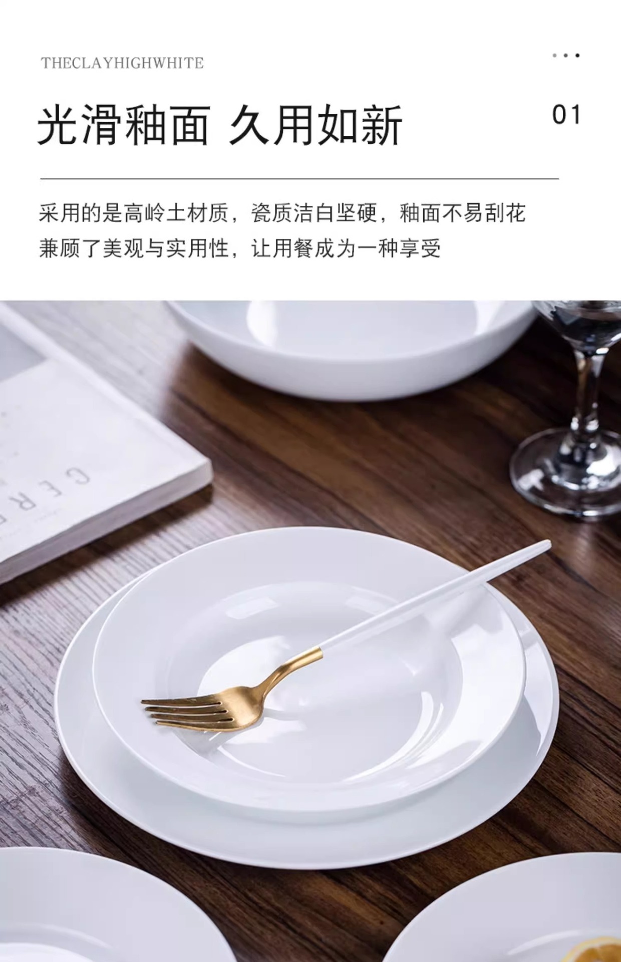 높은 흰색 도자기 Jingdezhen 중국 Underglaze 컬러 높은 흰색 도자기 세라믹 플레이트 가정용 접시 쌀 플레이트 플랫 플레이트 딥 플레이트 플레이트 그릇 플레이트