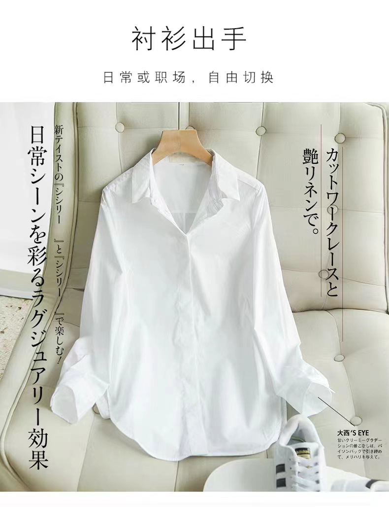 마이크로 스트레치 코튼 화이트 셔츠 여성 한국식 포근한 프로 캐주얼 긴팔 보토밍 셔츠스토어 가기