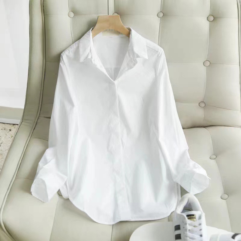 마이크로 스트레치 코튼 화이트 셔츠 여성 한국식 포근한 프로 캐주얼 긴팔 보토밍 셔츠