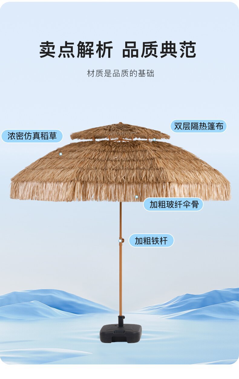 더블 탑 시뮬레이션 밀짚 우산토목 태양 우산 야외 햇살 우산 접는 해변 우산 빌라 파티오 우산 햇살스토어 가기