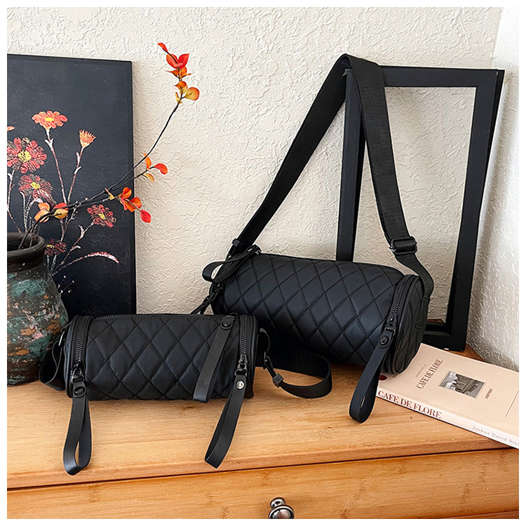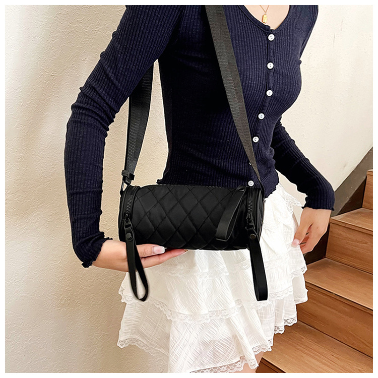 여성용 크로스보더 틈새 디자인 가방 2025 신상 하이엔드 여름 다이아몬드 모양 숄더 크로스백 인기 원통형 가방스토어 가기