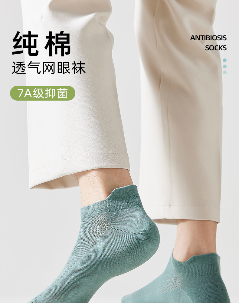 7A 항균 양말 남성 여름 얇은 귀 양말 순면 떨어지지 않는 탈취제 흑백 스포츠 남성 보트 양말