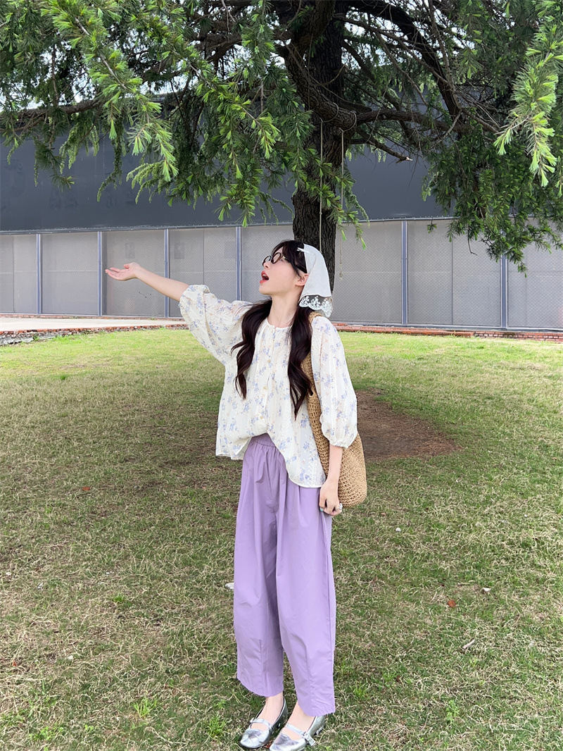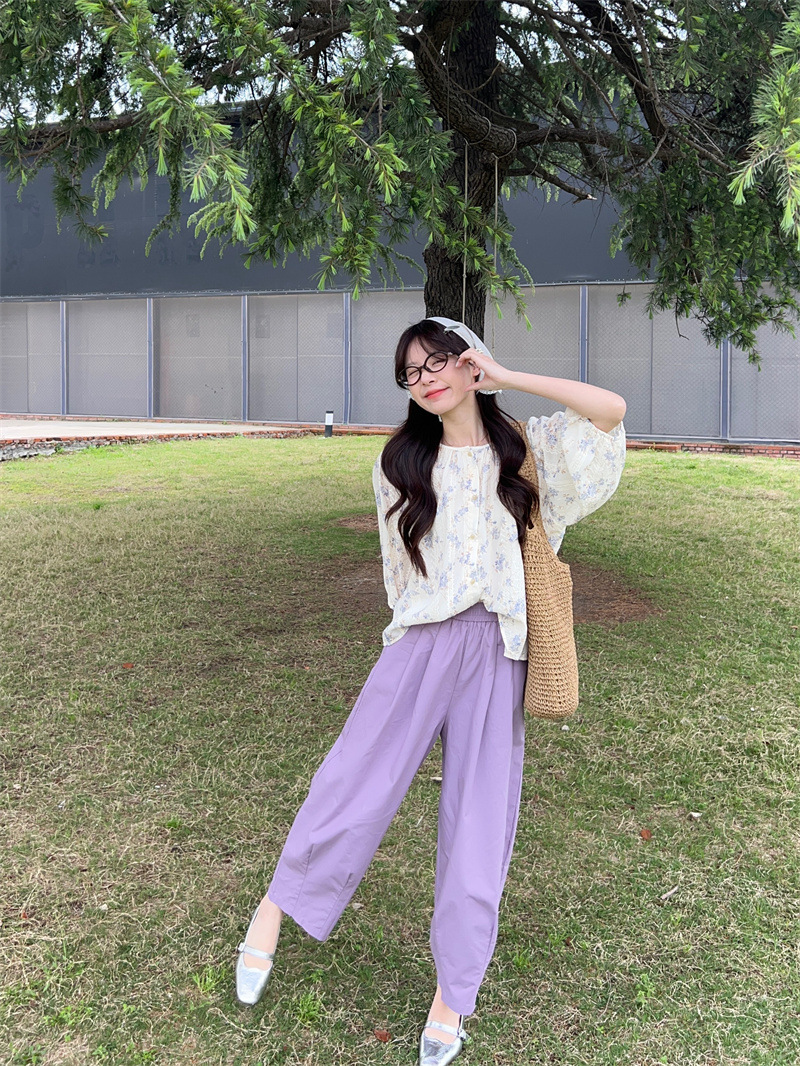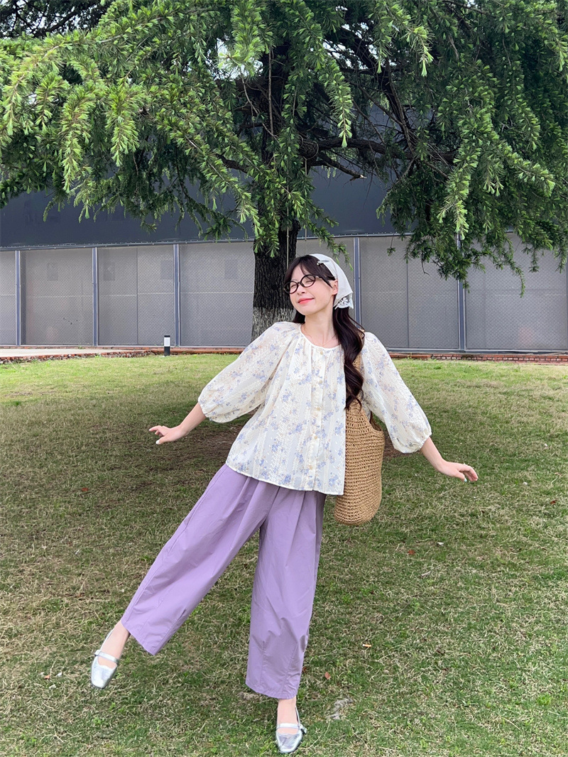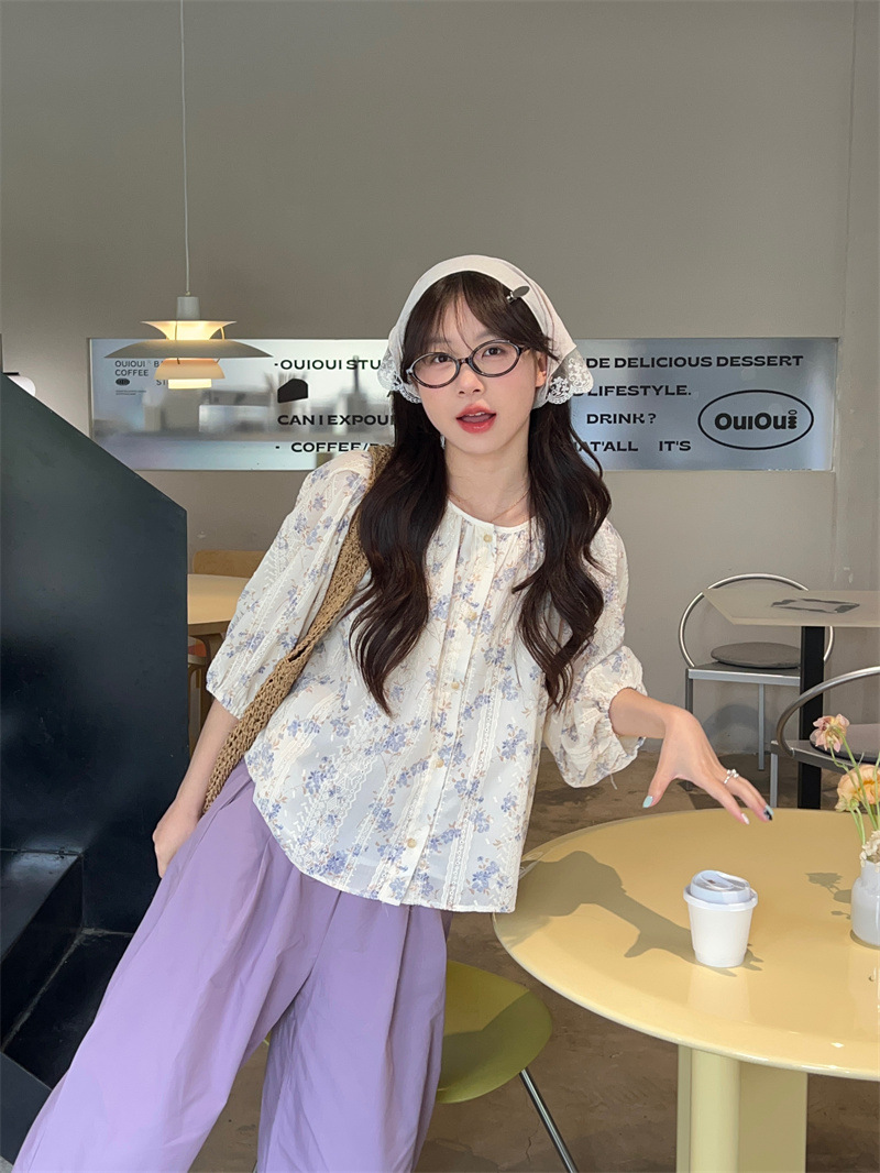 리얼 샷 ~ 봄과 여름 달콤한 슬림 꽃 레이스 셔츠 종이 캐주얼 바지 투피스 77450스토어 가기