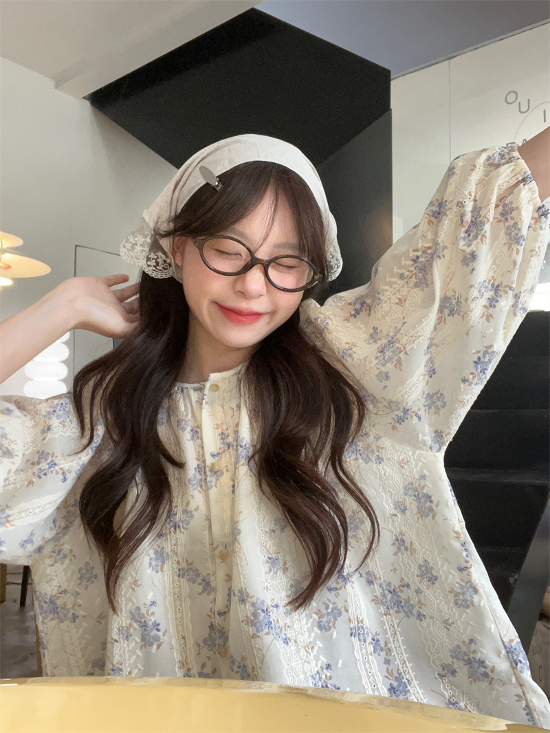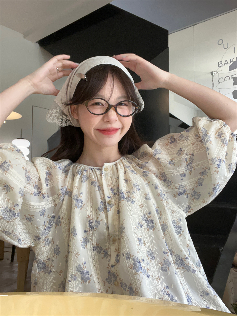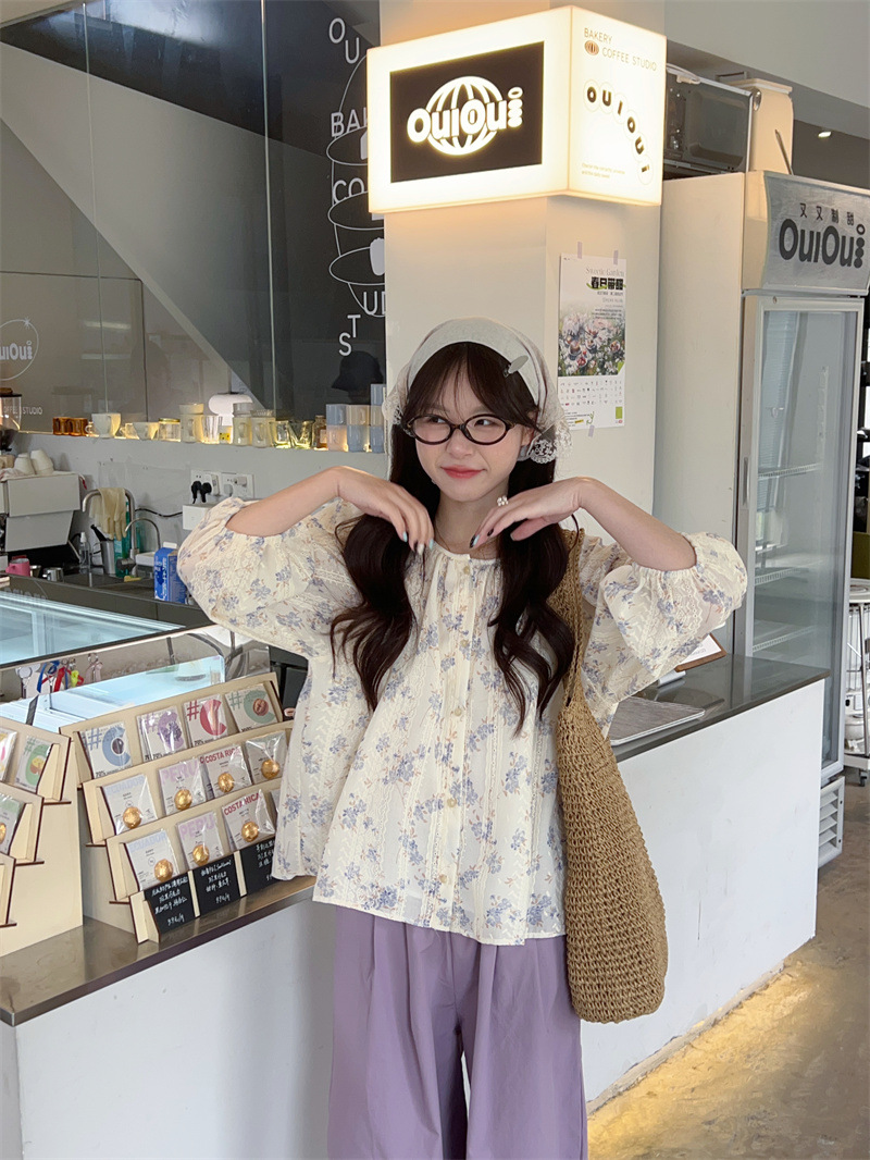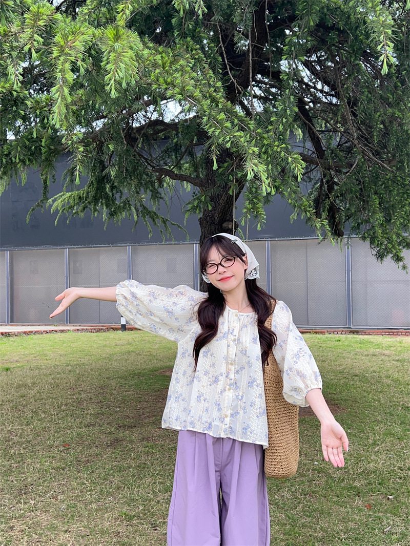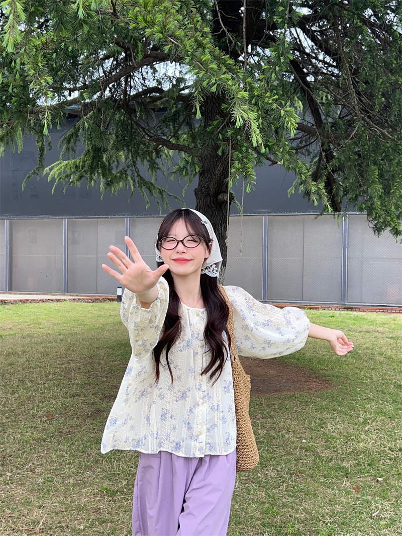 리얼 샷 ~ 봄과 여름 달콤한 슬림 꽃 레이스 셔츠 종이 캐주얼 바지 투피스 77450스토어 가기