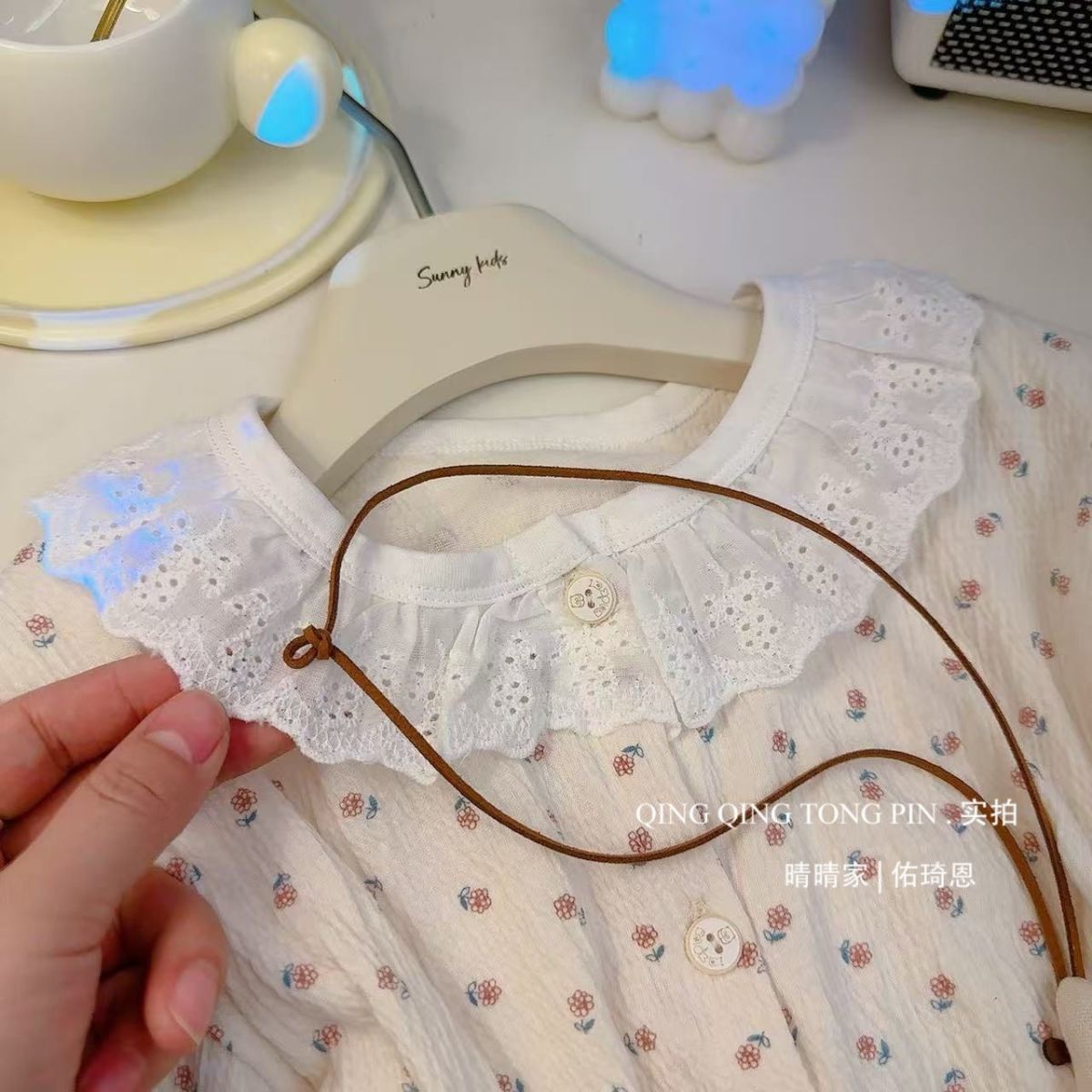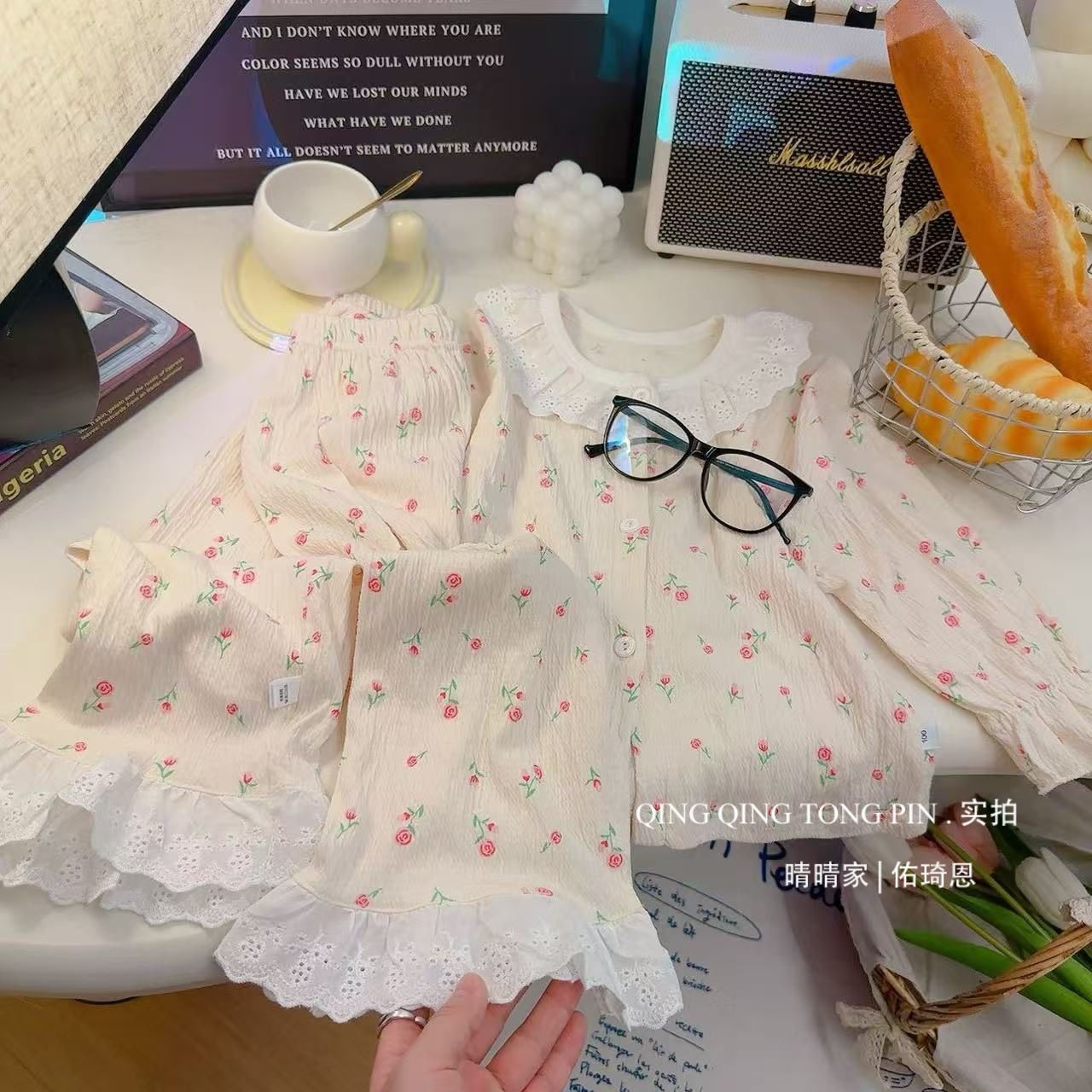 어린이 홈 의류 세트 레이스 새 꽃 소녀 잠옷 바지 공주 에어컨 옷 봄과 가을 한국 스타일스토어 가기