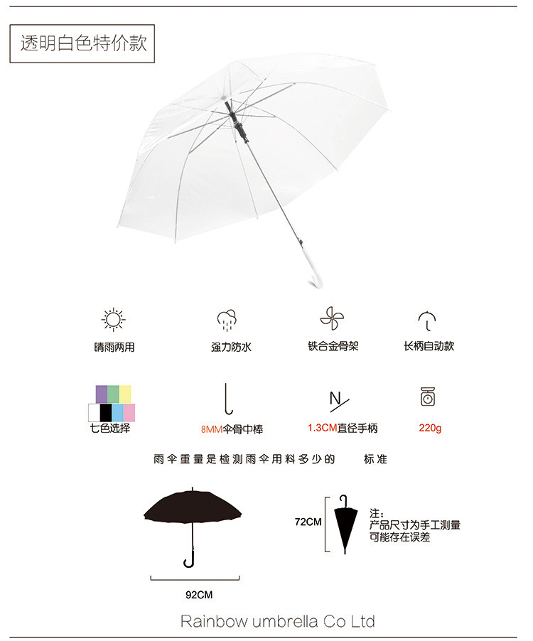 투명 우산 맞춤형 긴 손잡이 우산 어린이 공연 우산 학생 자동 우산 광고 우산 맞춤형 인터넷 빨간 우산스토어 가기