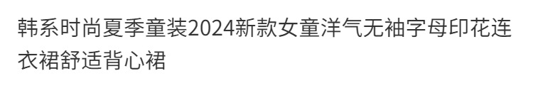 2025 여름 새 소녀들의 세련된 민소매 편지 인쇄 원피스 한국식 유행 아동복 편안한 빅 원피스스토어 가기