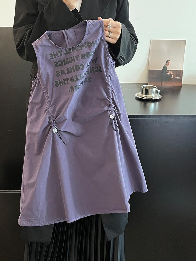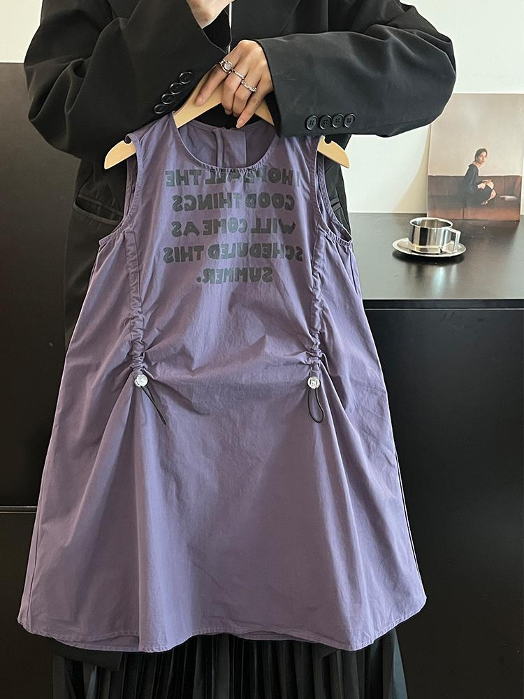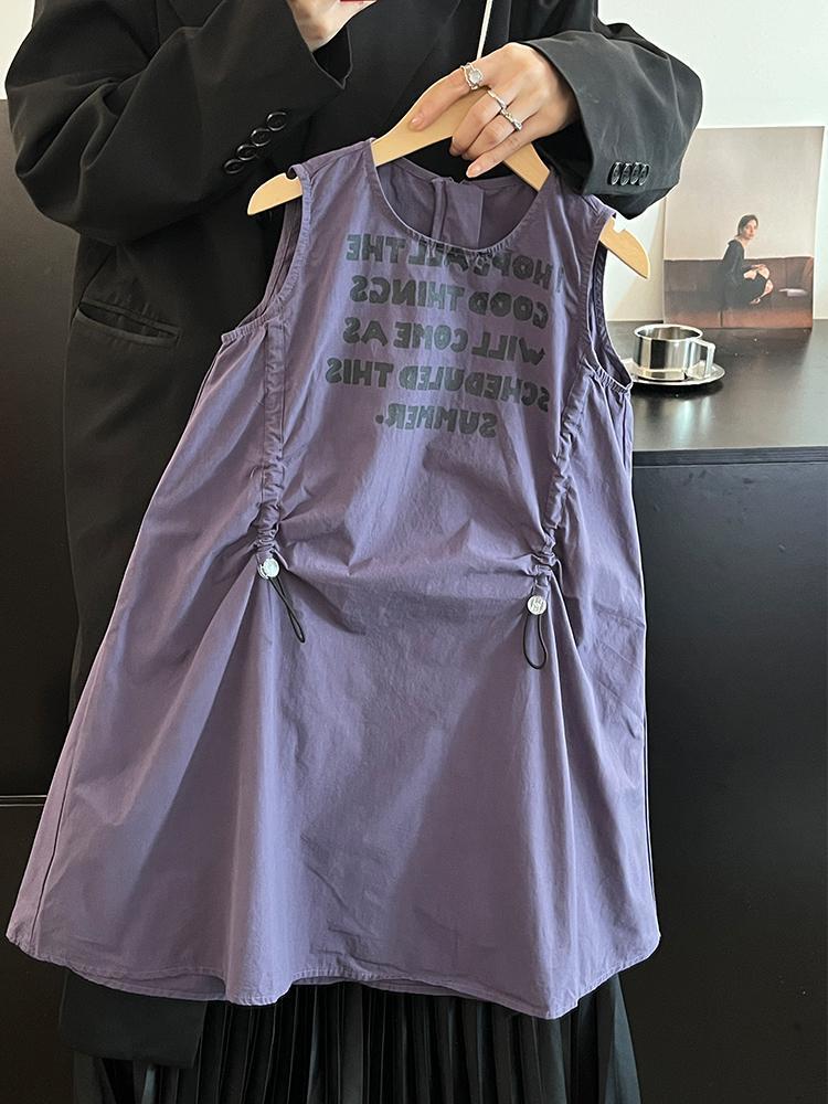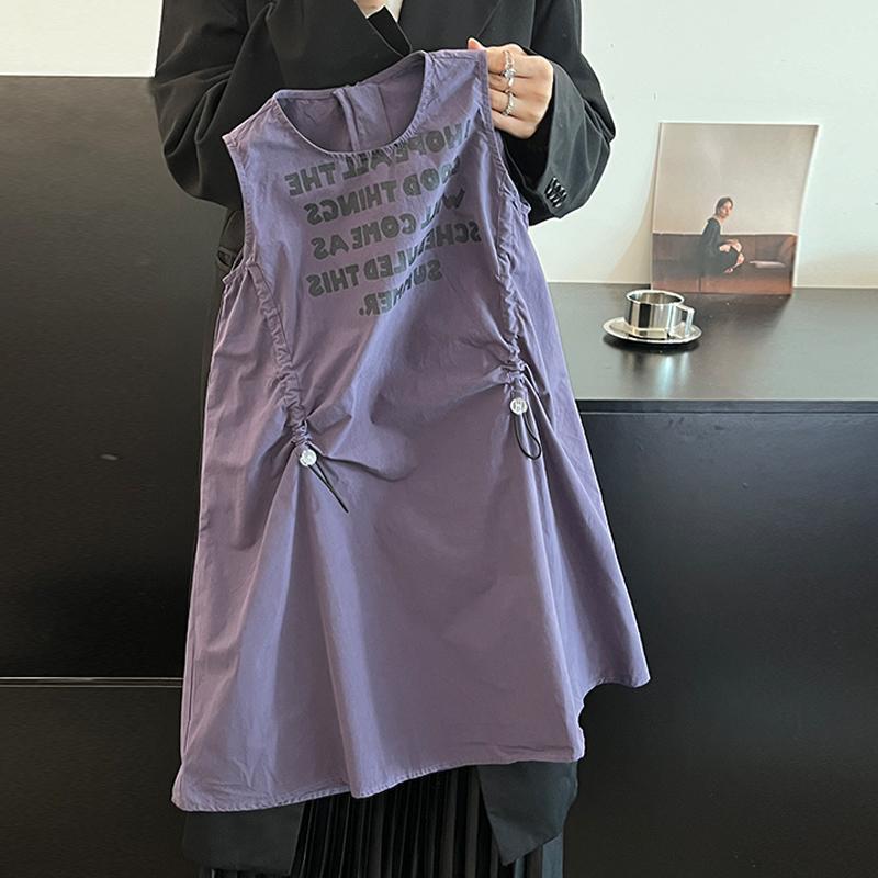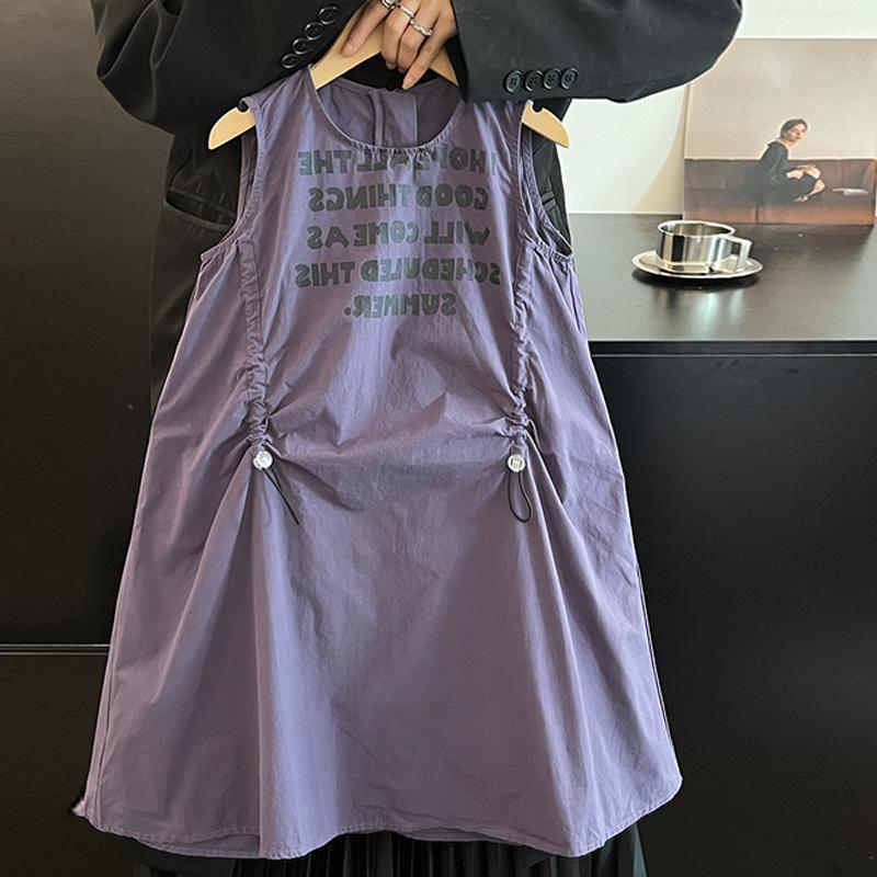 2025 여름 새 소녀들의 세련된 민소매 편지 인쇄 원피스 한국식 유행 아동복 편안한 빅 원피스