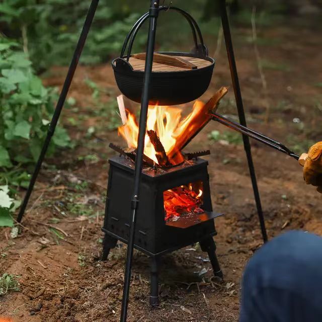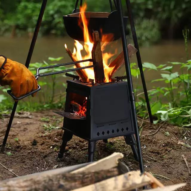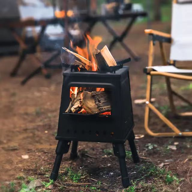 여행 작은 장작 스토브 야외 휴대용 접이식 차가운 넥타이 스틸 작은 장작 스토브 가정용 야외 풀 세트 차 요리