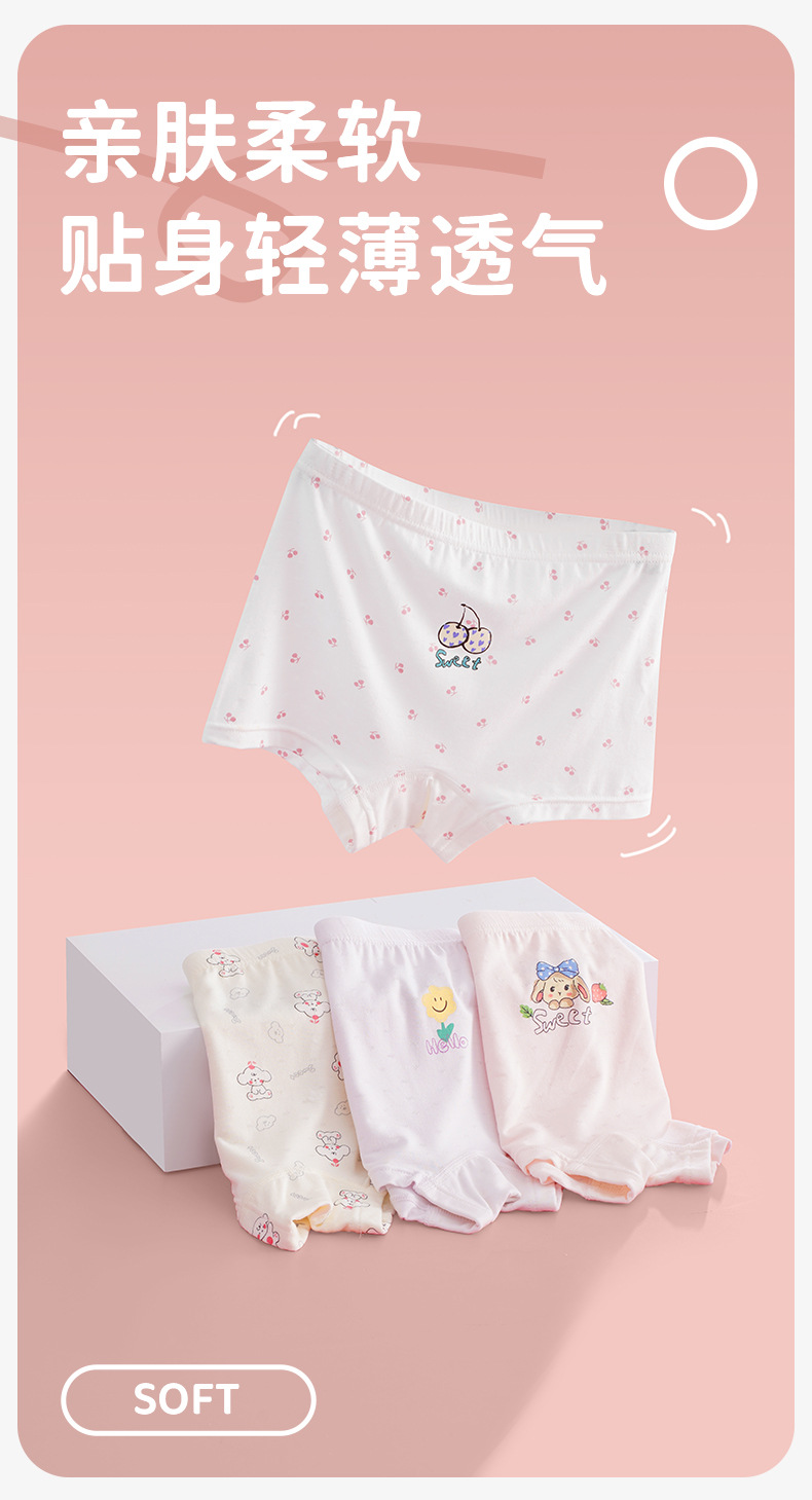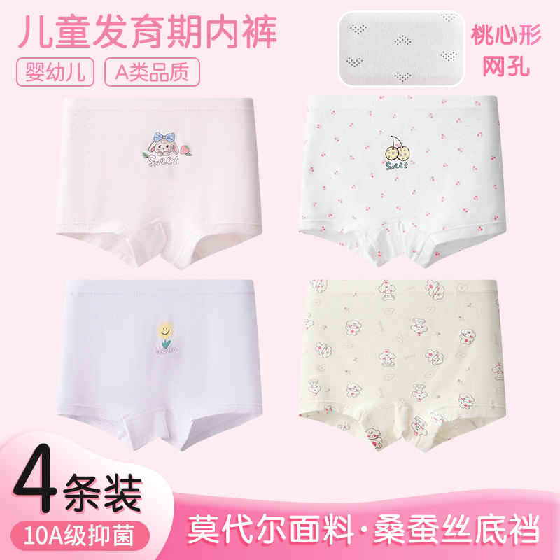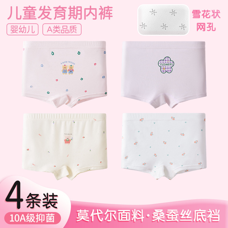 여아용 항균 모달 메쉬 속옷, 여아용 사각팬티, PP가 없는 여아용 사각팬티, 편안하고 부드러우며 통기성이 좋습니다.스토어 가기