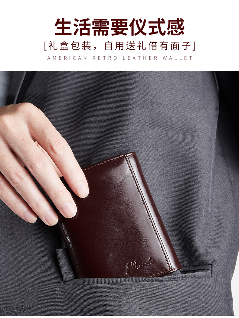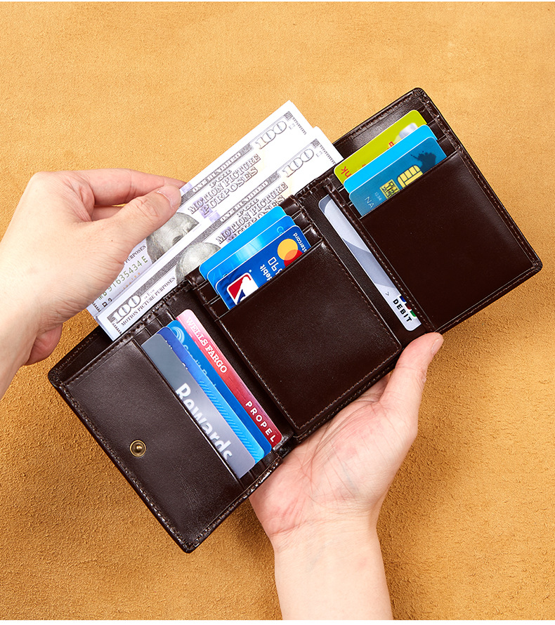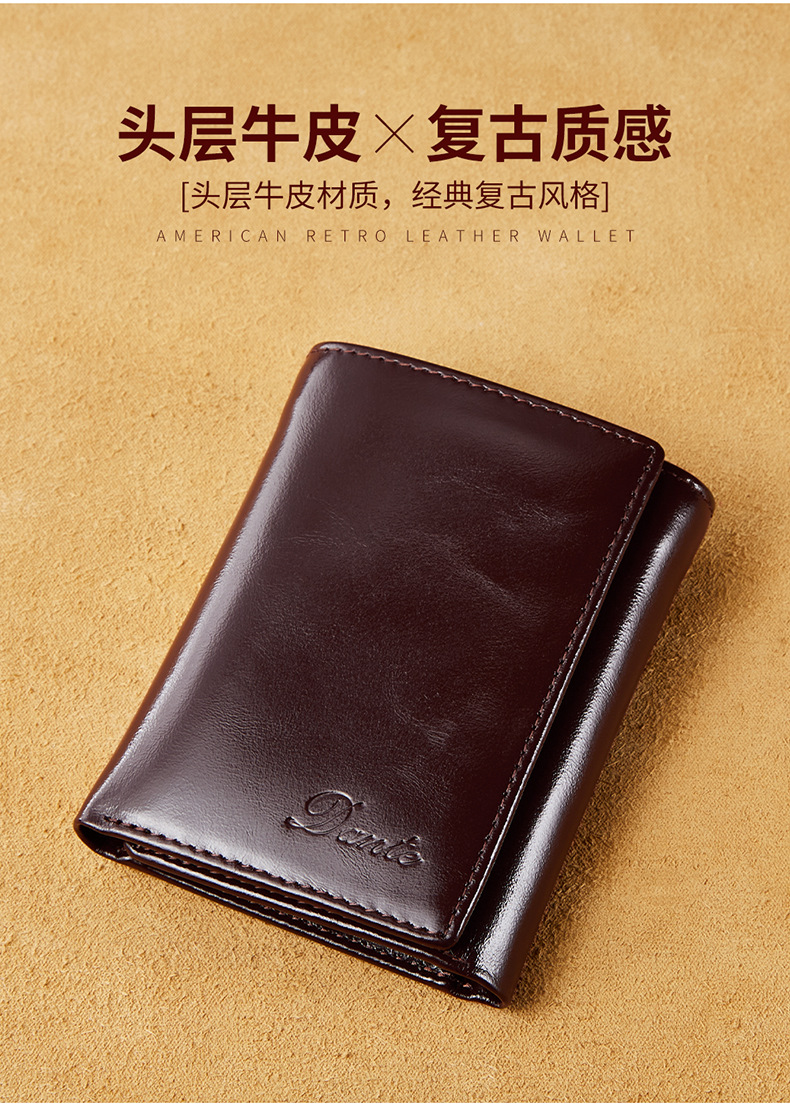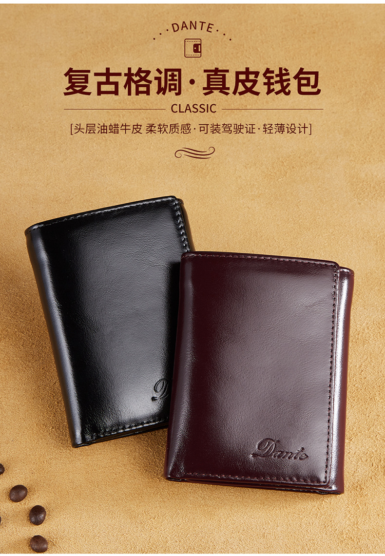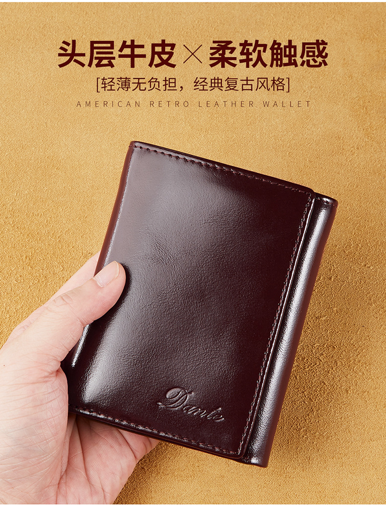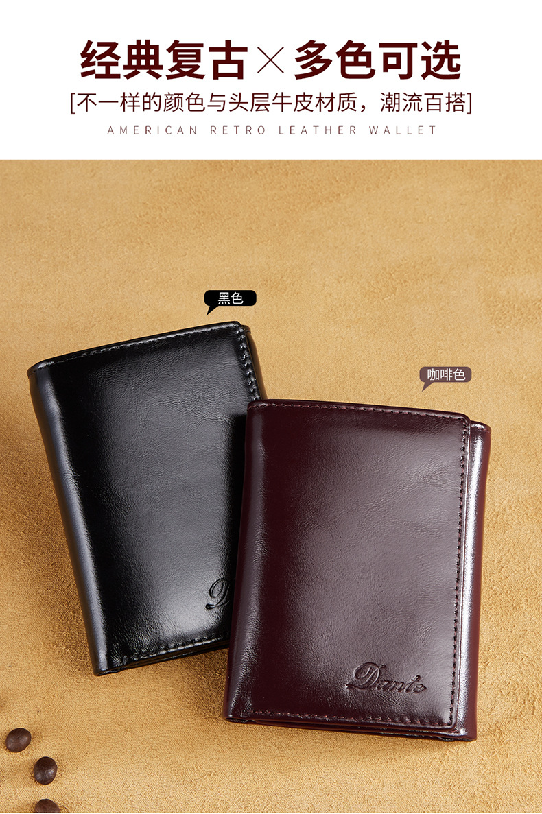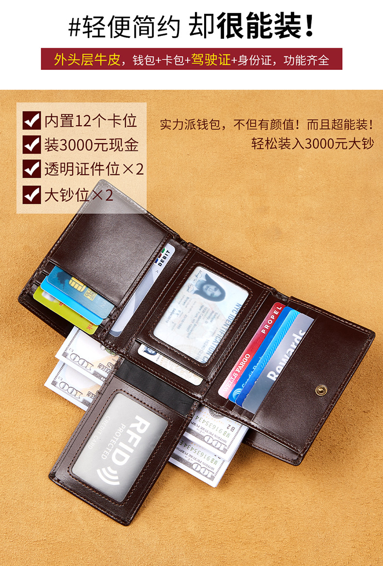 대외 무역 복고풍 오일 왁스 헤드 레이어 소 가죽 남성 지갑 도난 방지 카드 3 배 느슨한 잎 대용량 멀티 카드 도매