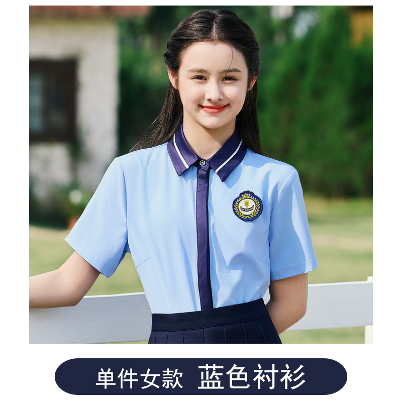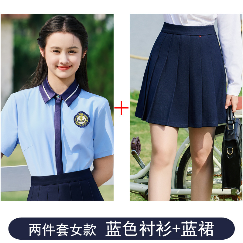 • 여성용 블루 셔츠 + 블루 스커트 투피스 세트