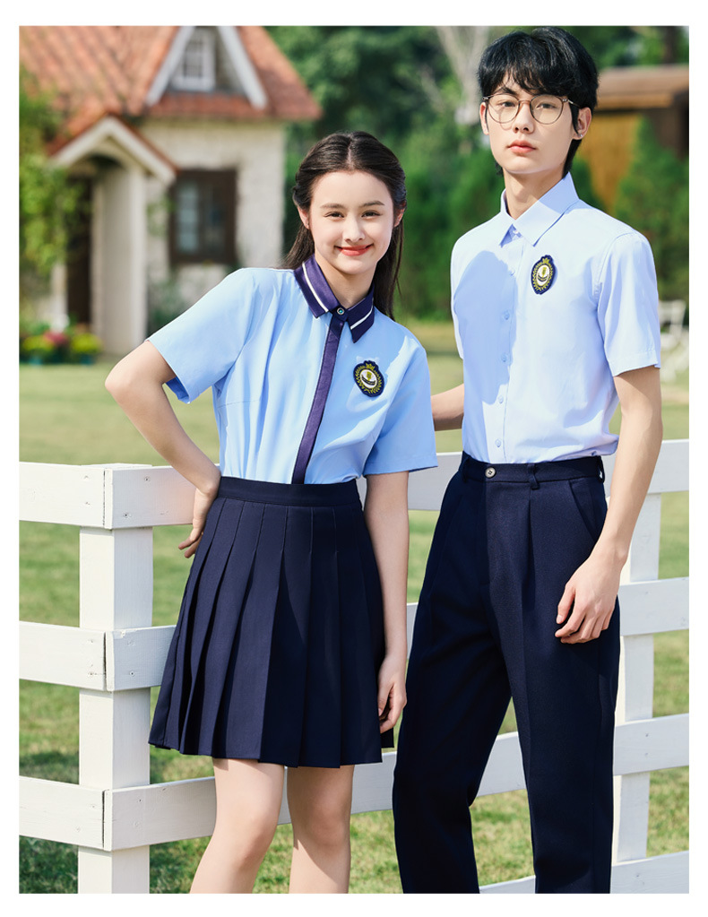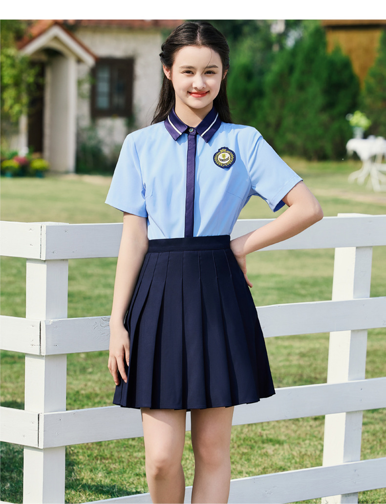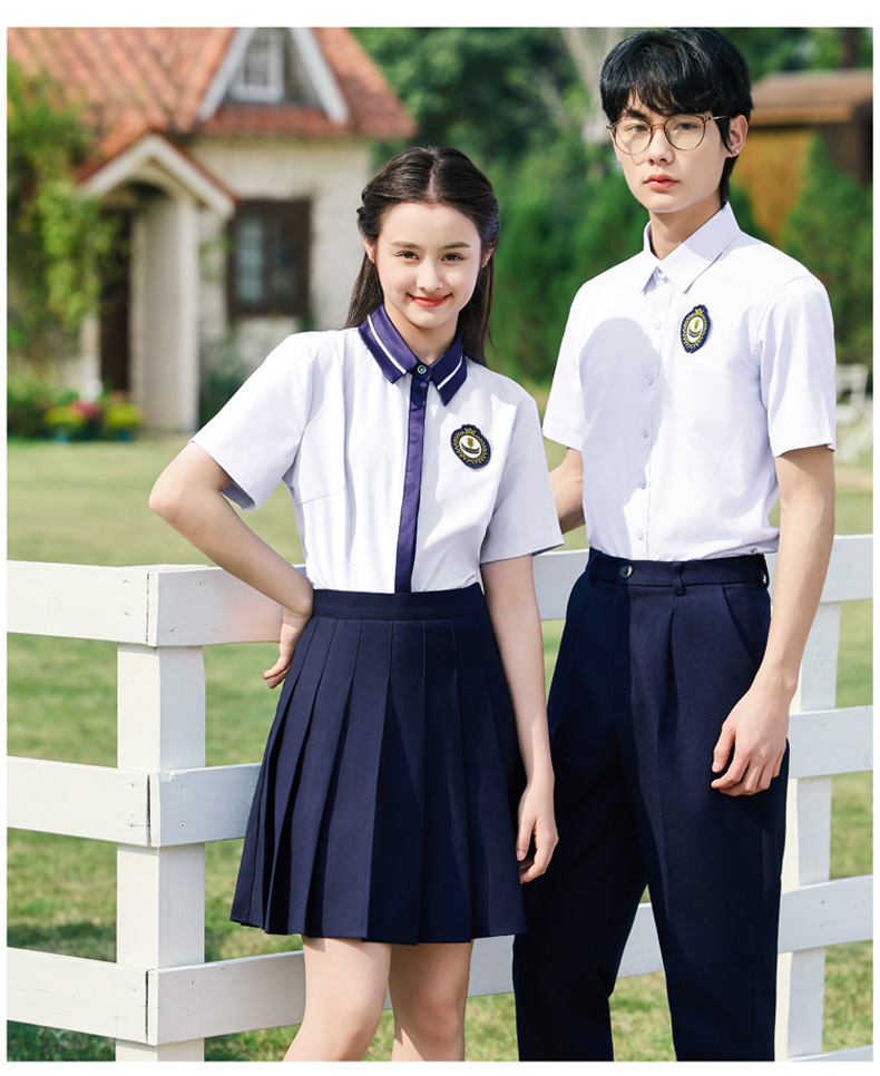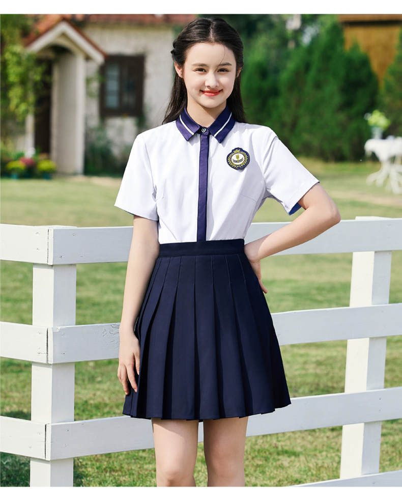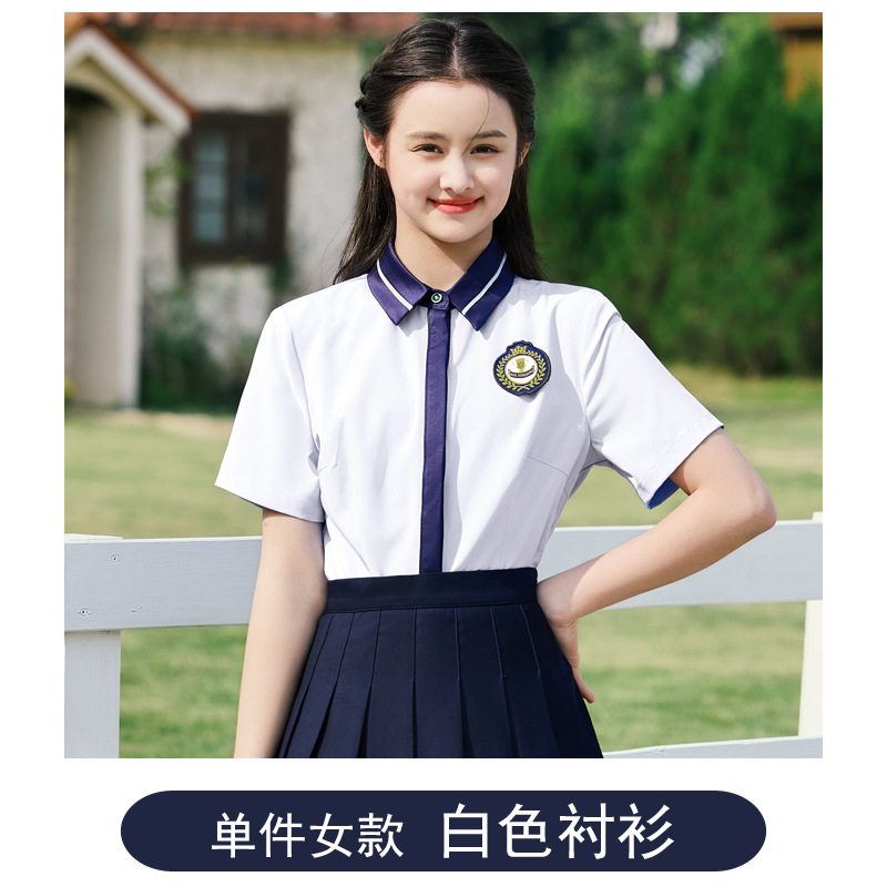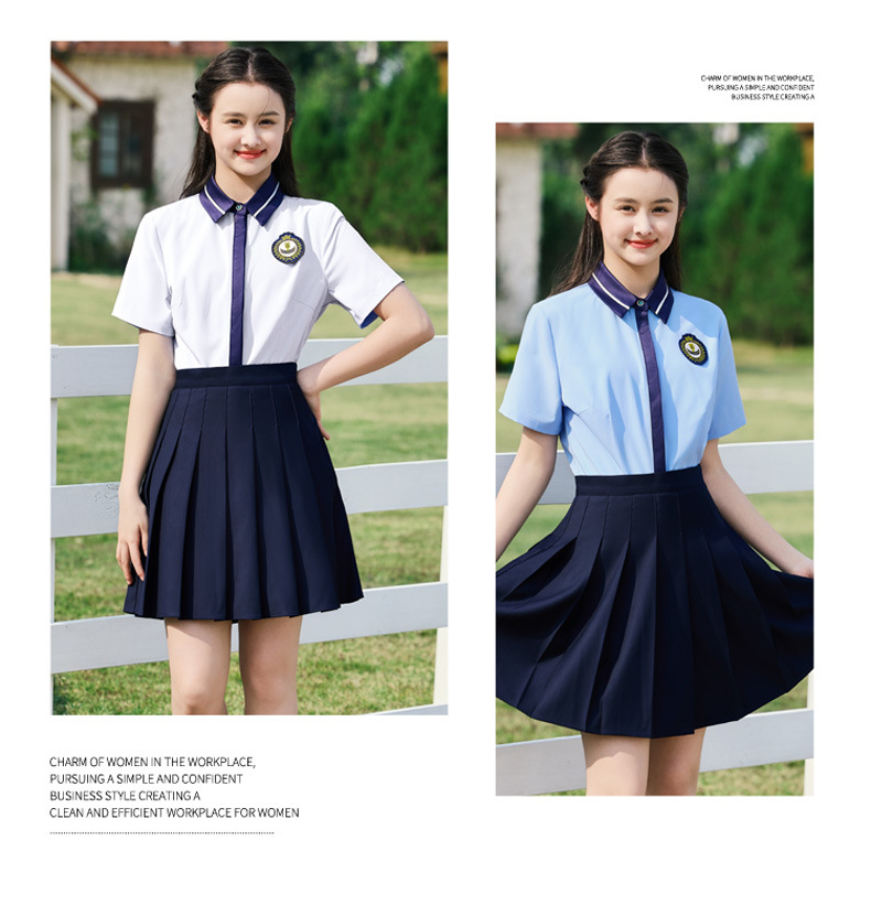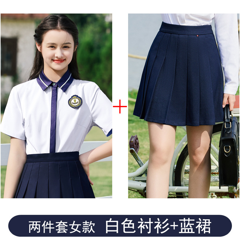 • 여성용 투피스 세트 흰색 셔츠 + 파란색 스커트