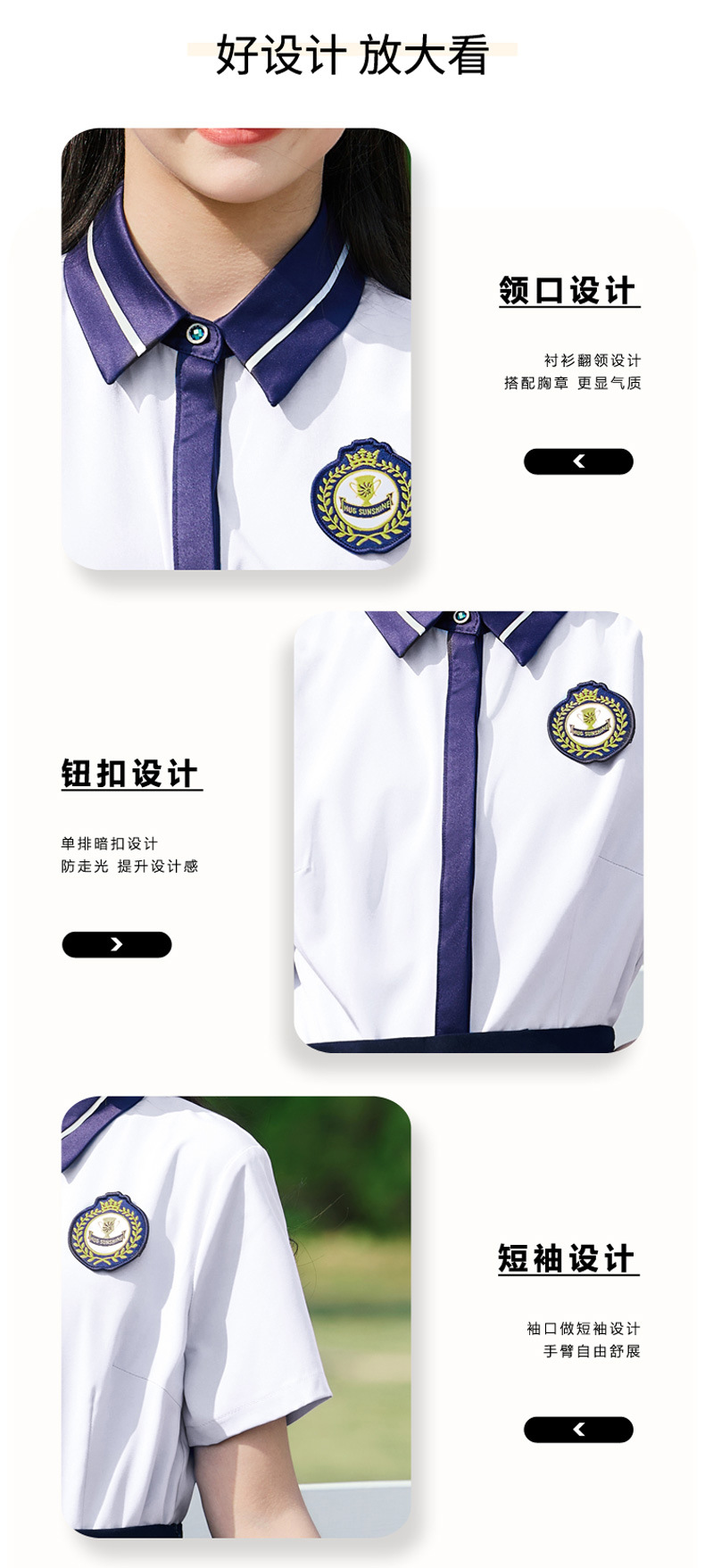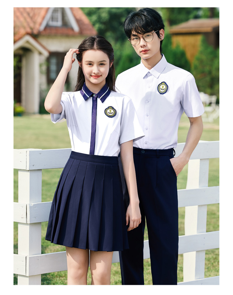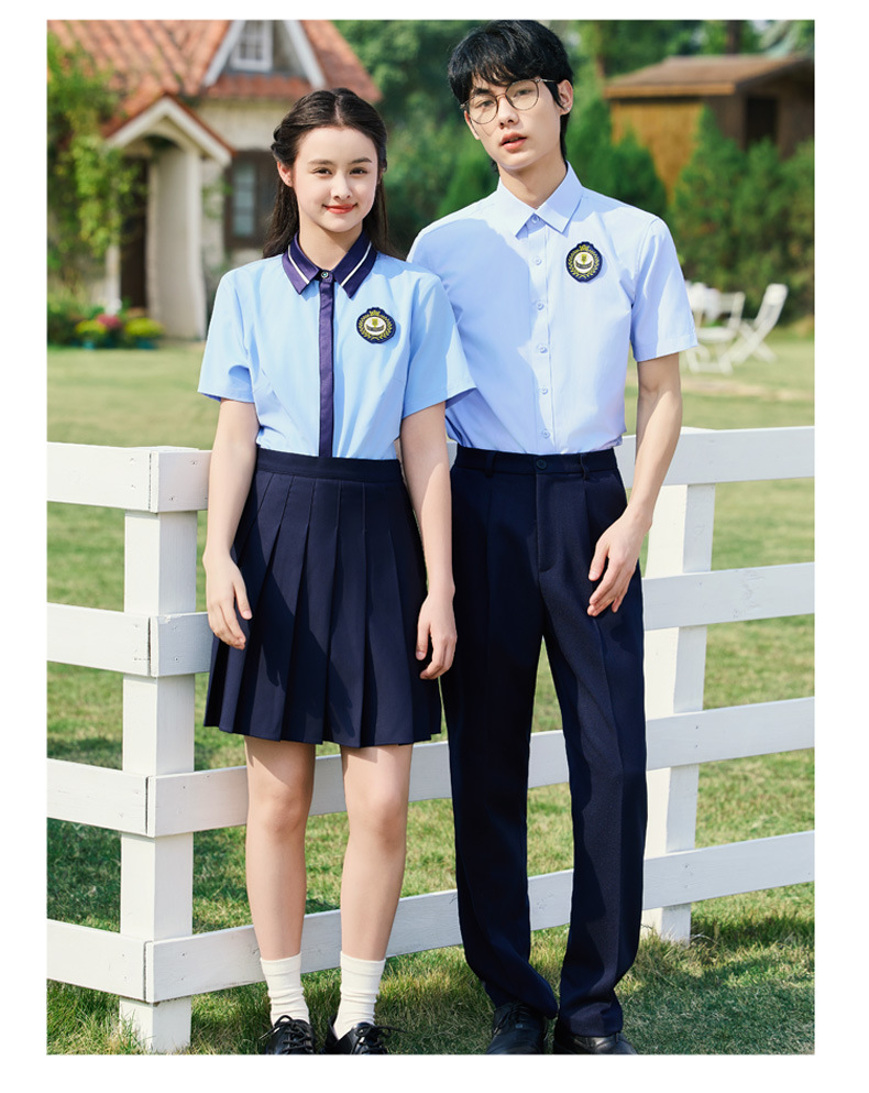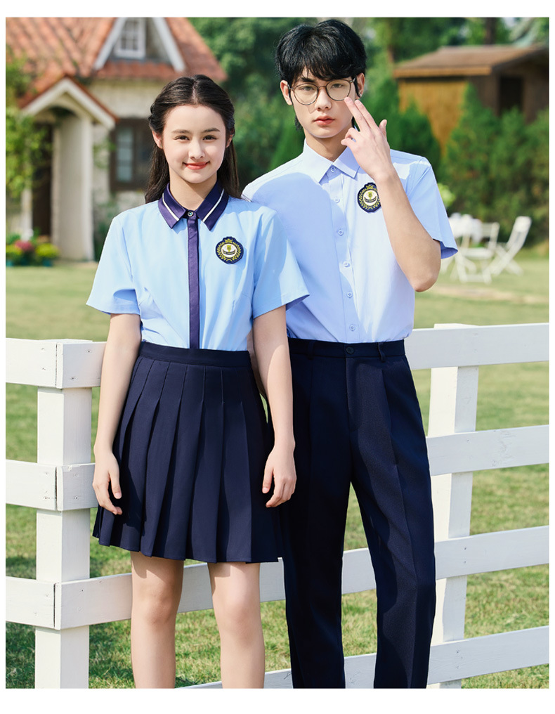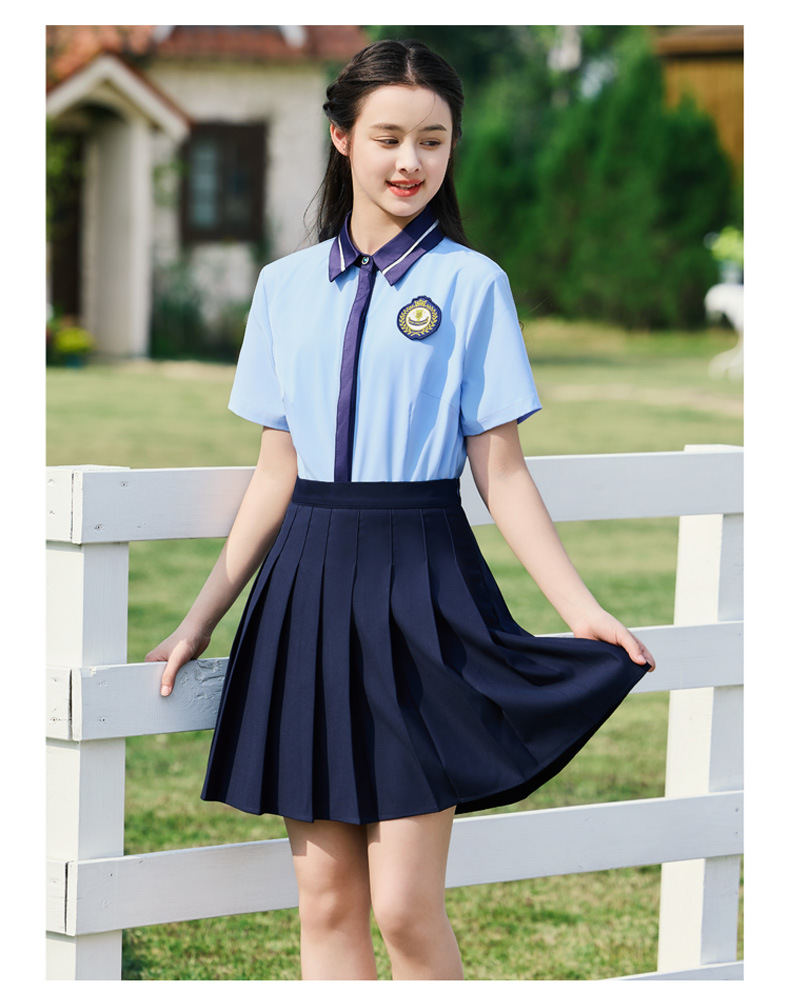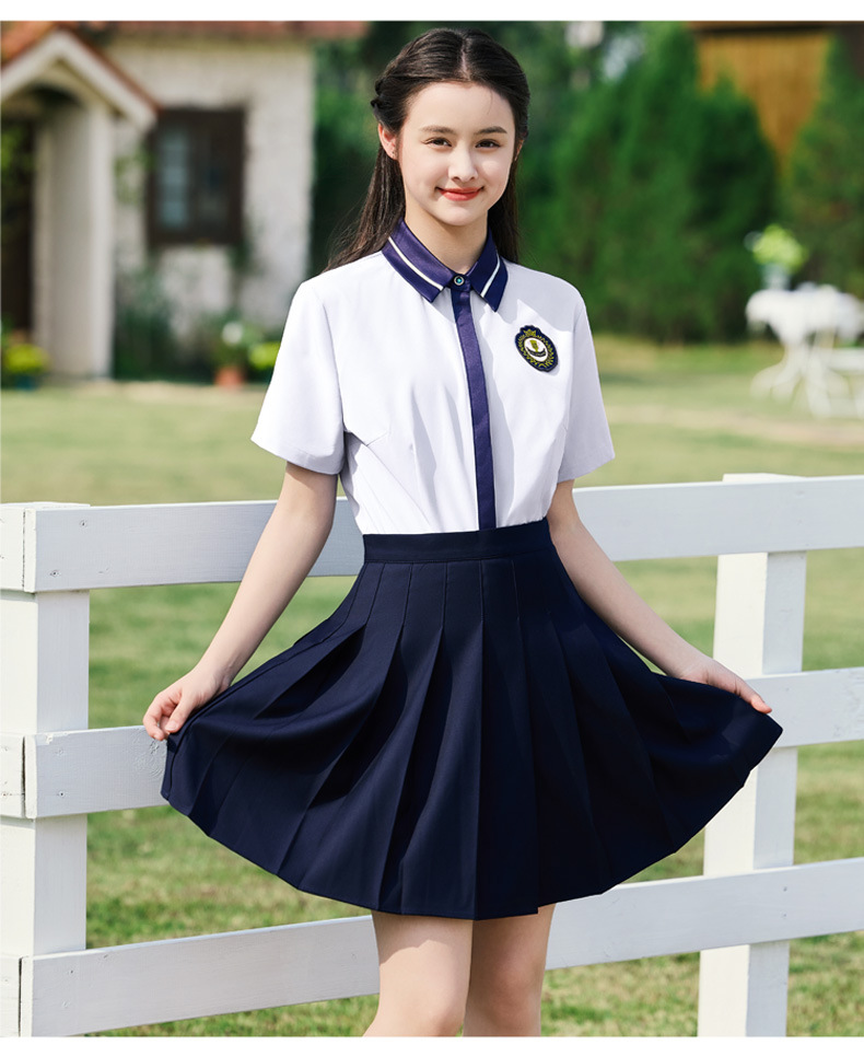 • 여성용 투피스 세트 흰색 셔츠 + 파란색 스커트