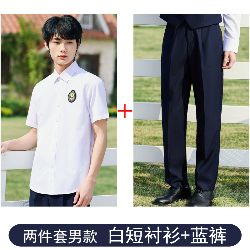 • 남성용 투피스 세트 흰색 짧은 셔츠 + 파란색 바지