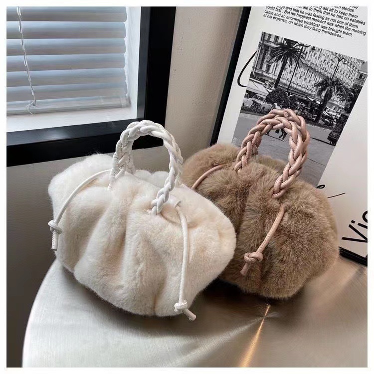 부드러운 구름 봉제 높은 짜임새 핸드 헬드 드로우 스트링 고급 가을 및 겨울 어깨 손으로 짠 가방 여성용 가방