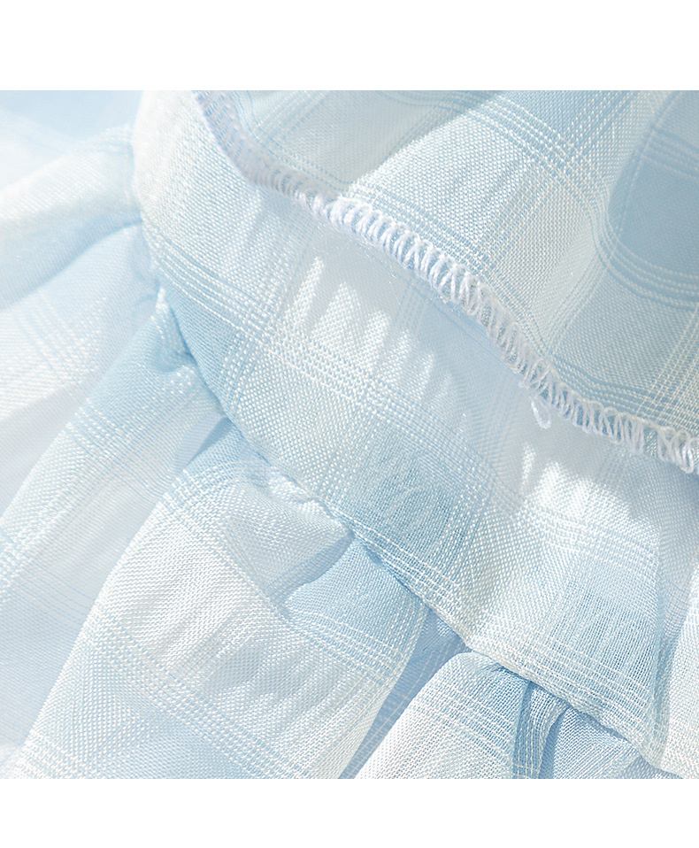 고양이 옷 마카롱 격자 무늬 만화 홀터 스커트 공주 스타일 메쉬 원피스 봄/여름 통기성 애완 동물 옷