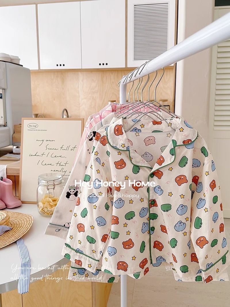 어린이 잠옷 긴 소매 봄과 가을 만화 귀여운 소녀 아기 새로운 카디건 에어컨 홈 의류 세트스토어 가기