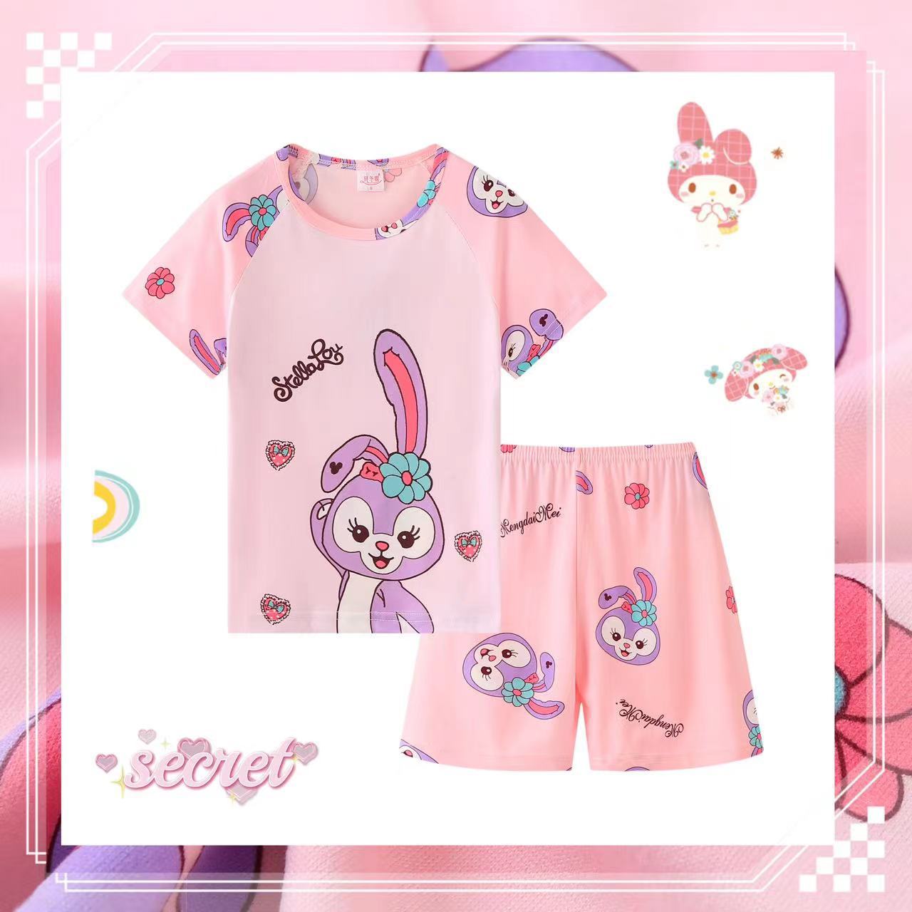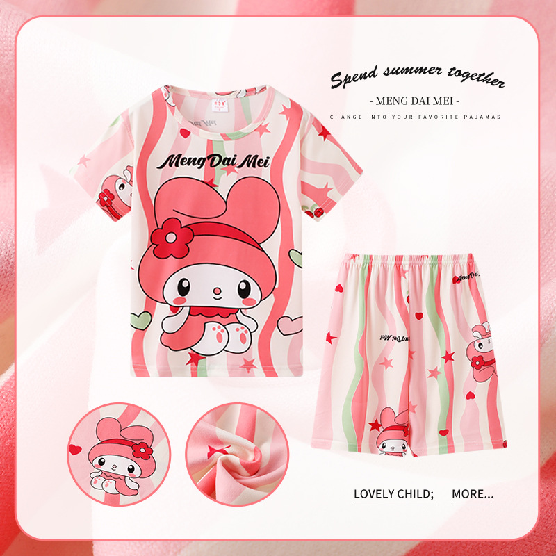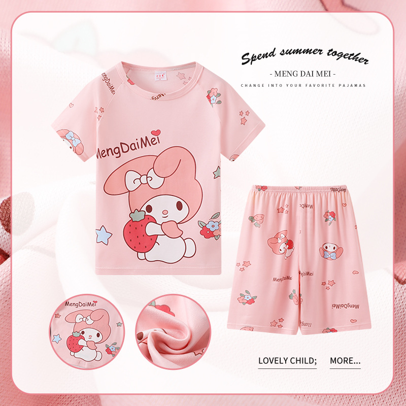 동남아시아 2025 여자 잠옷 여름 얇은 반팔 어린이 어린 소녀 여름 아기 집 옷 세트