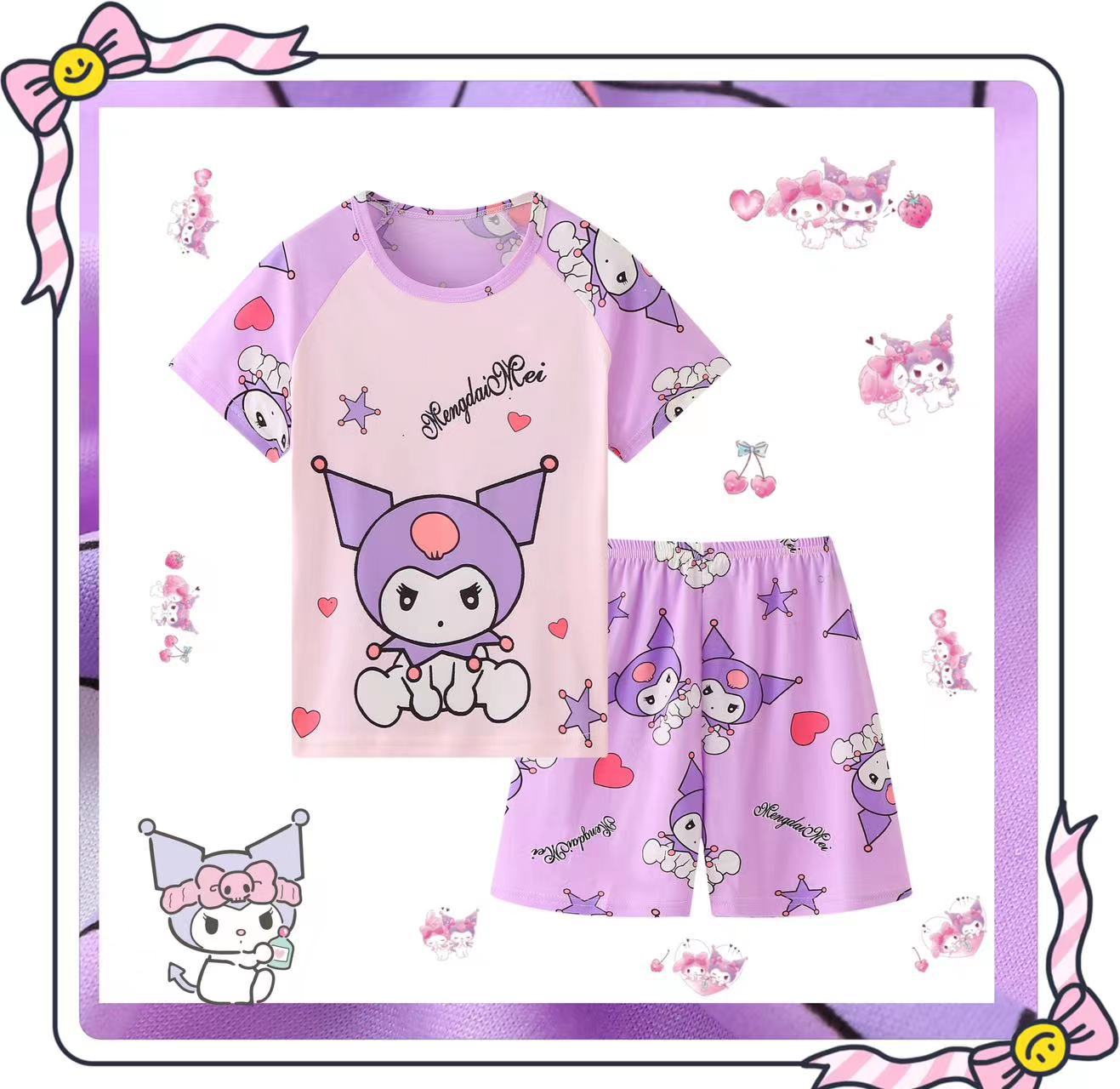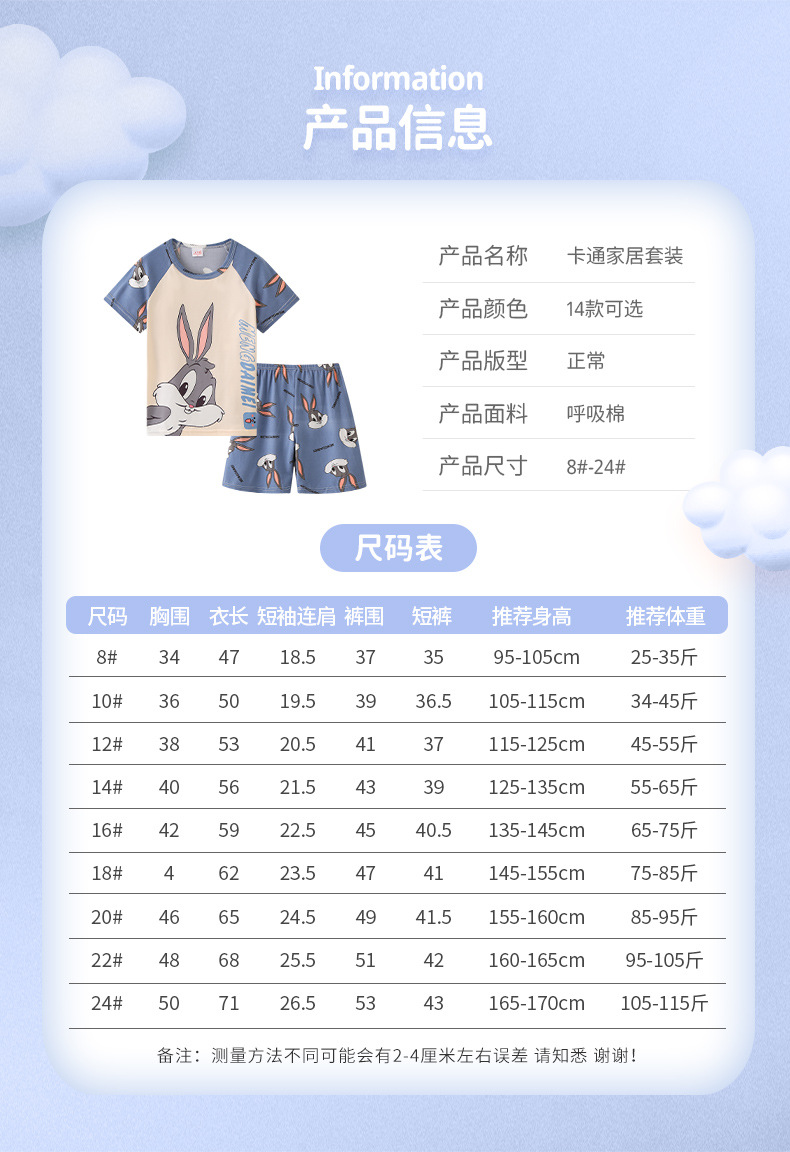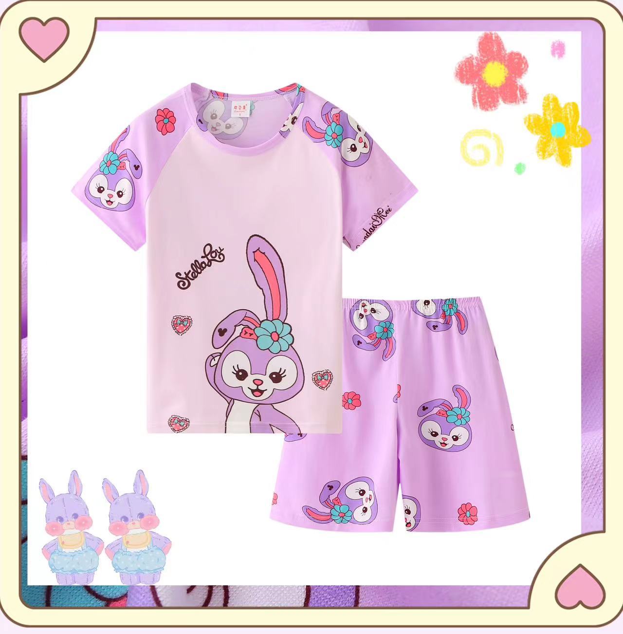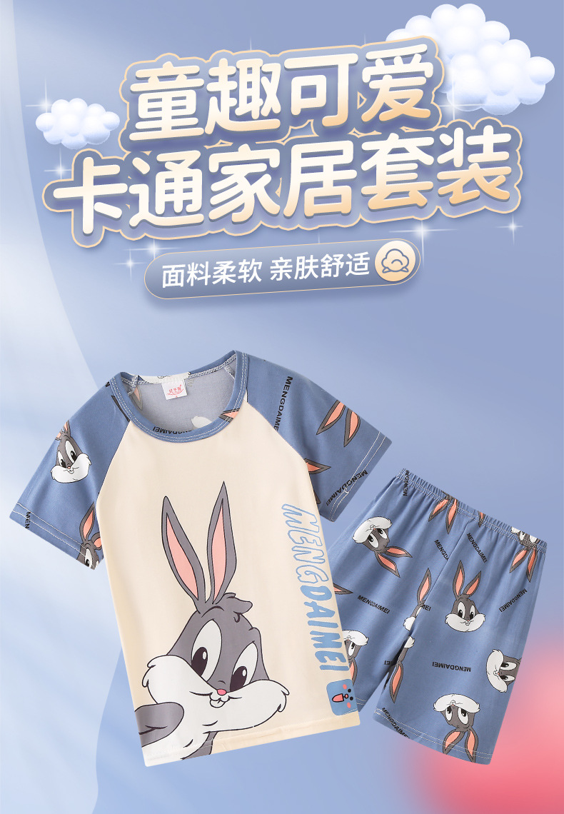 동남아시아 2025 여자 잠옷 여름 얇은 반팔 어린이 어린 소녀 여름 아기 집 옷 세트스토어 가기
