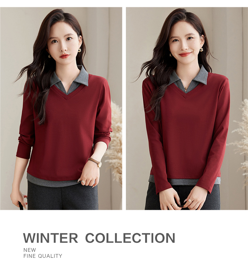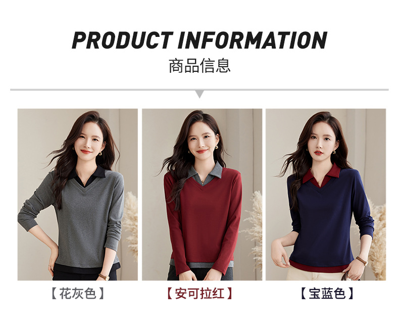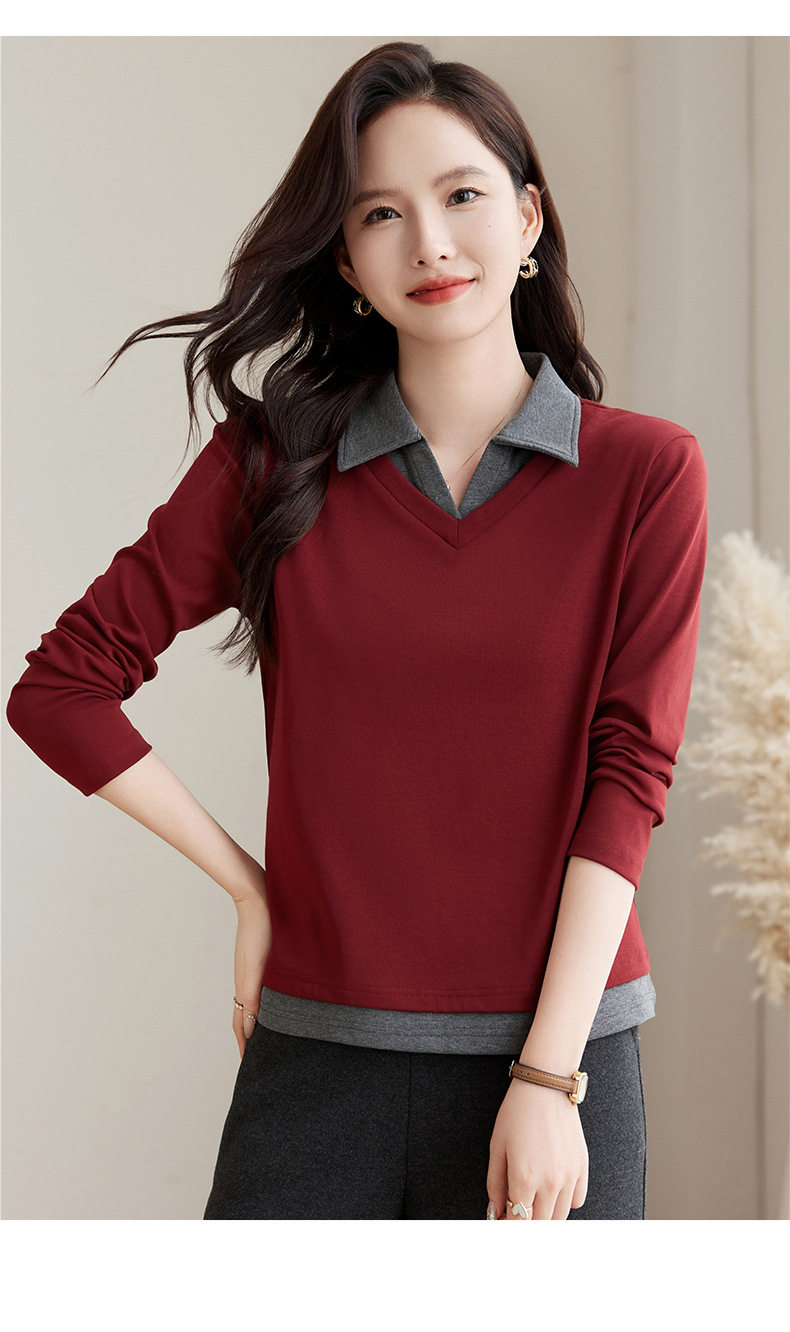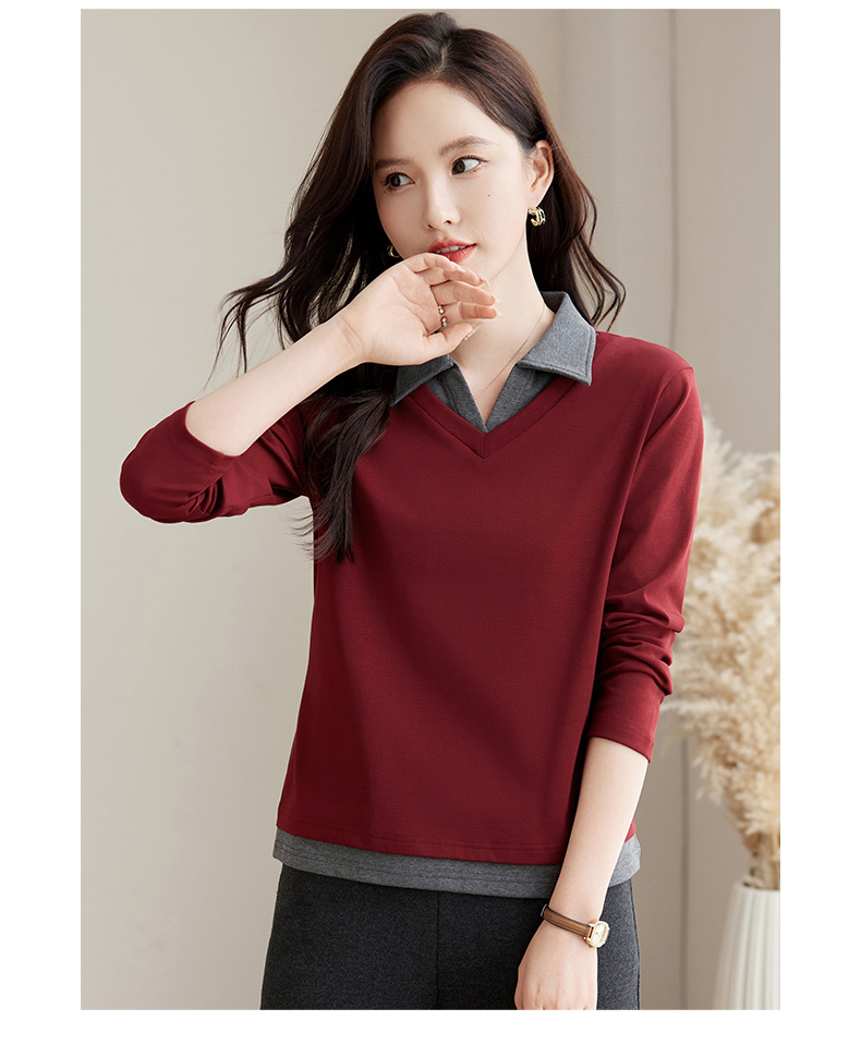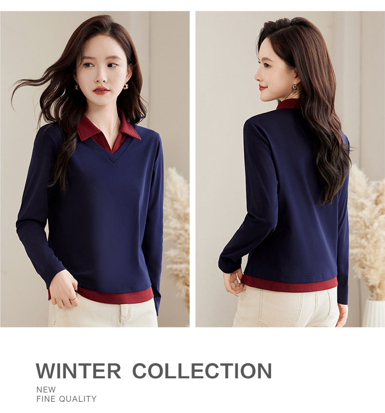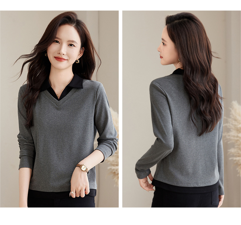 카운터 브랜드 하이 엔드 봄과 가을 여성 티셔츠 긴 소매 작은 옷깃 세련된 올 매치 코튼 V 넥 얇은 여성용 탑