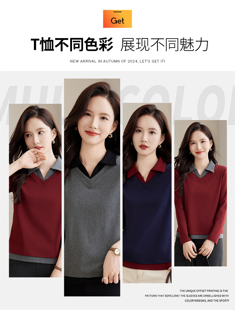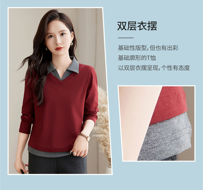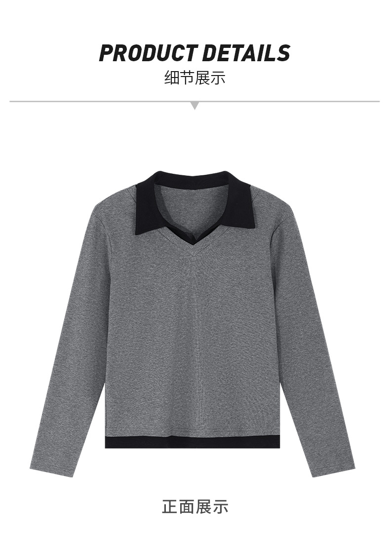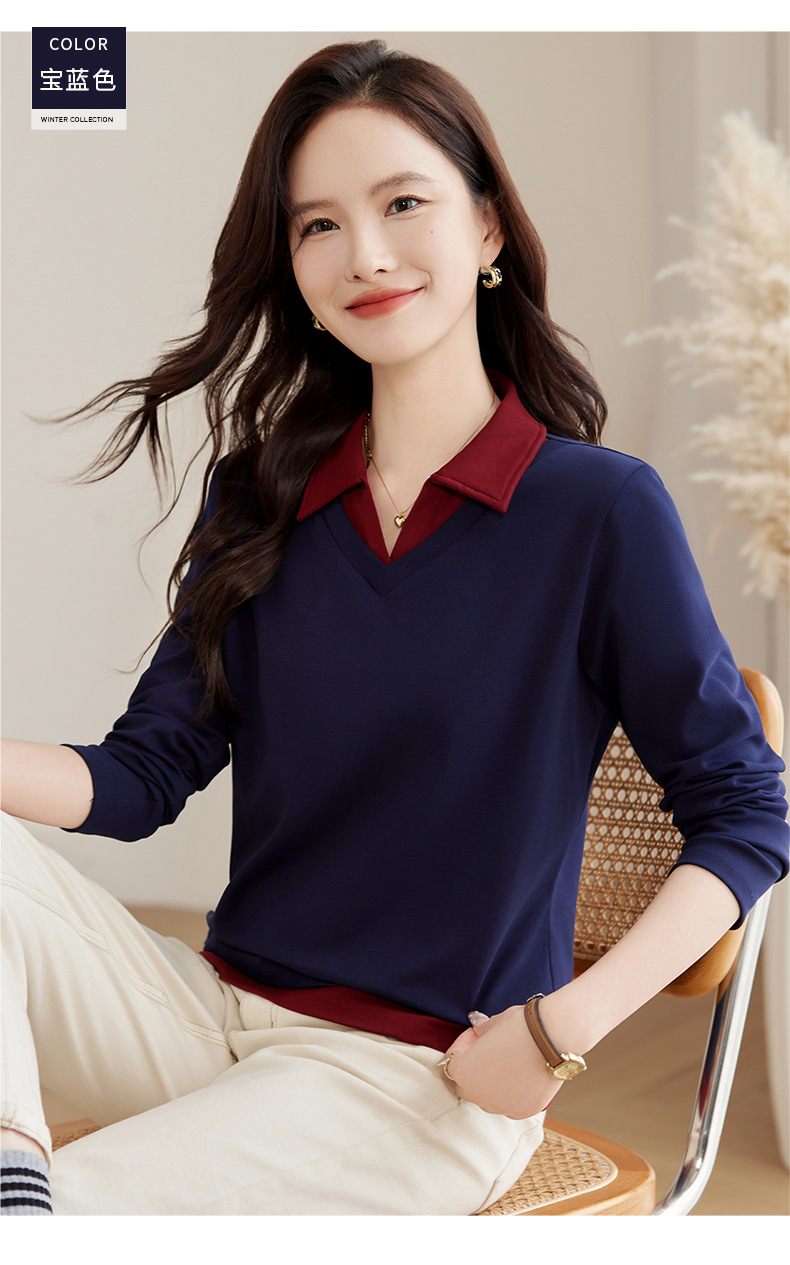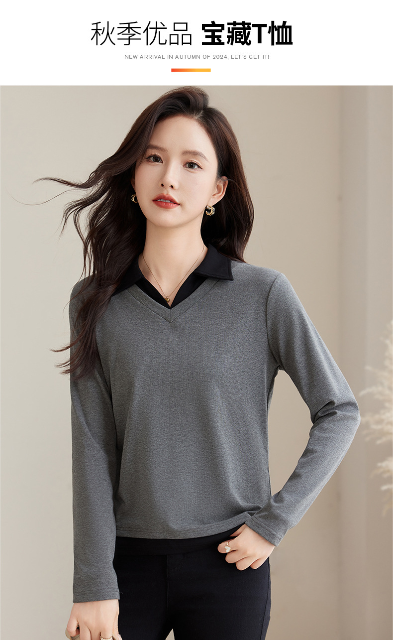 카운터 브랜드 하이 엔드 봄과 가을 여성 티셔츠 긴 소매 작은 옷깃 세련된 올 매치 코튼 V 넥 얇은 여성용 탑스토어 가기