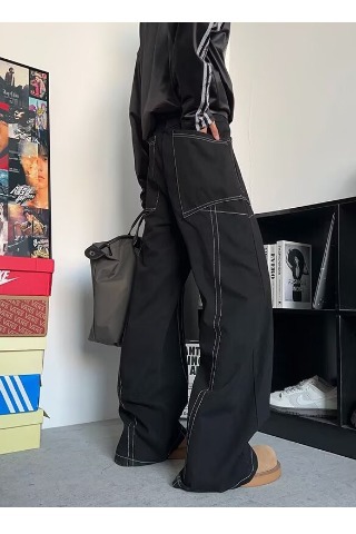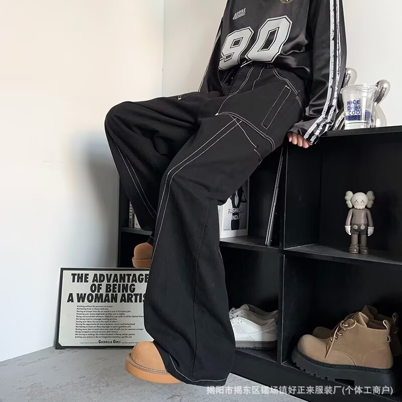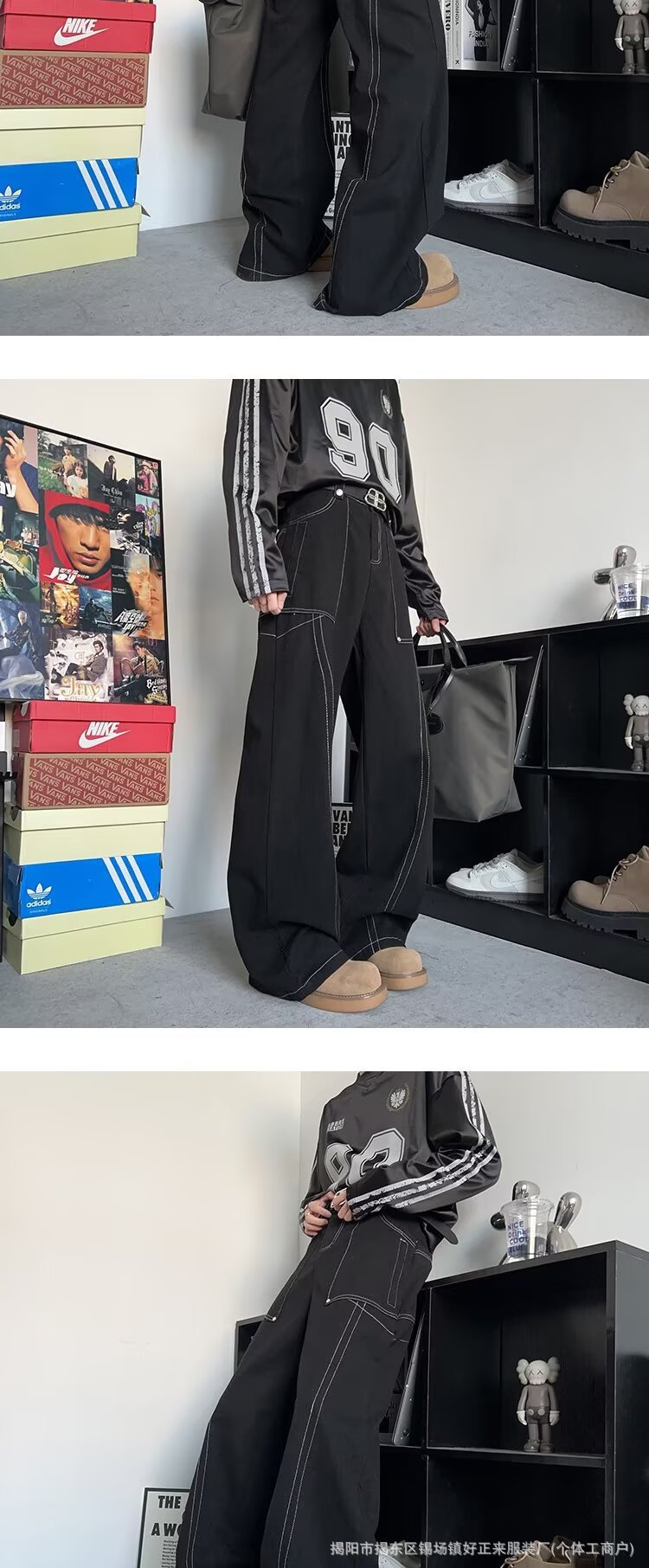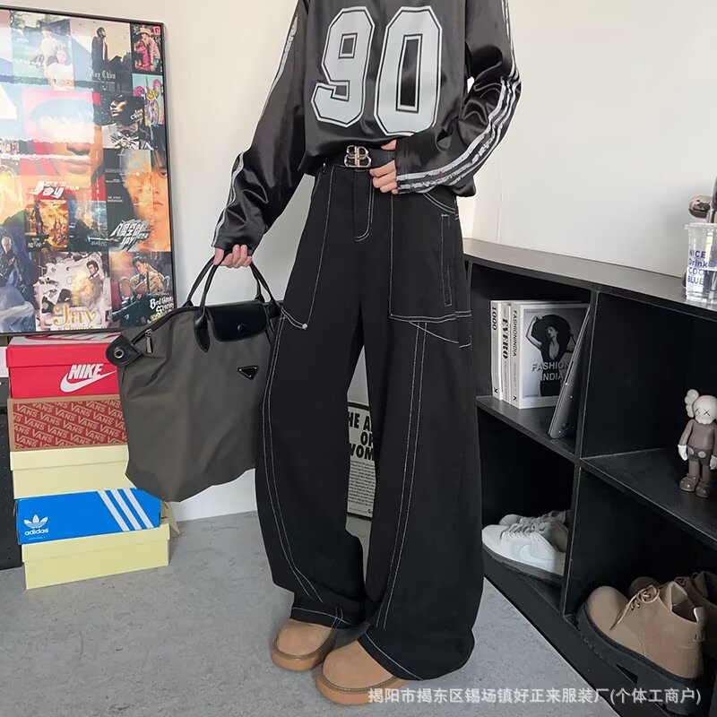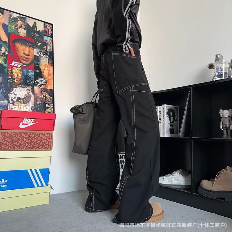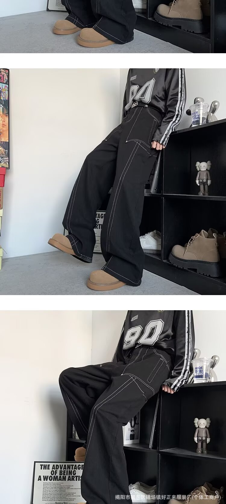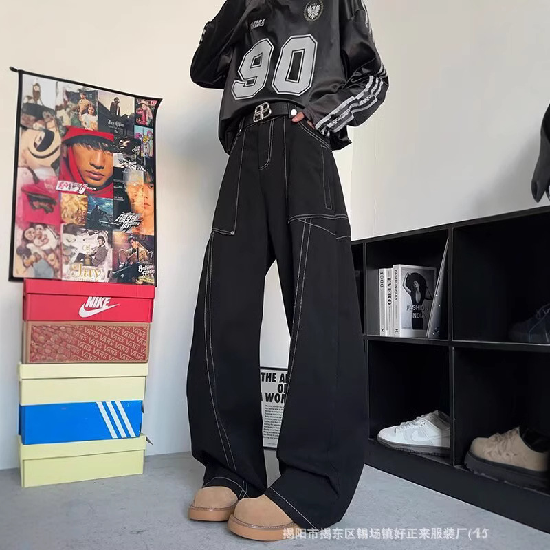 2025 봄 새로운 오픈 라인 디자인 센스 툴링 청바지 남성 아메리칸 스타일 레트로 느슨한 슬리밍 스트레이트 레그 와이드 레그 바지스토어 가기